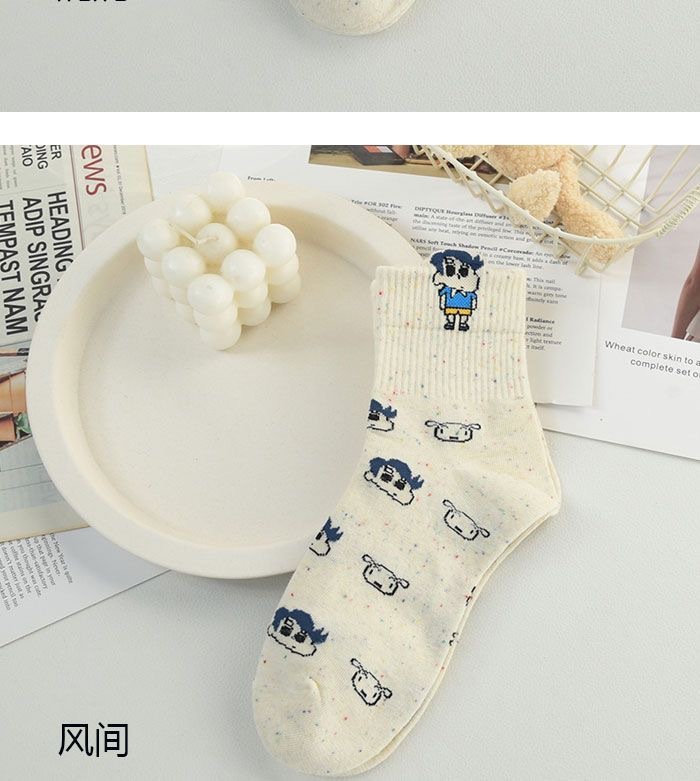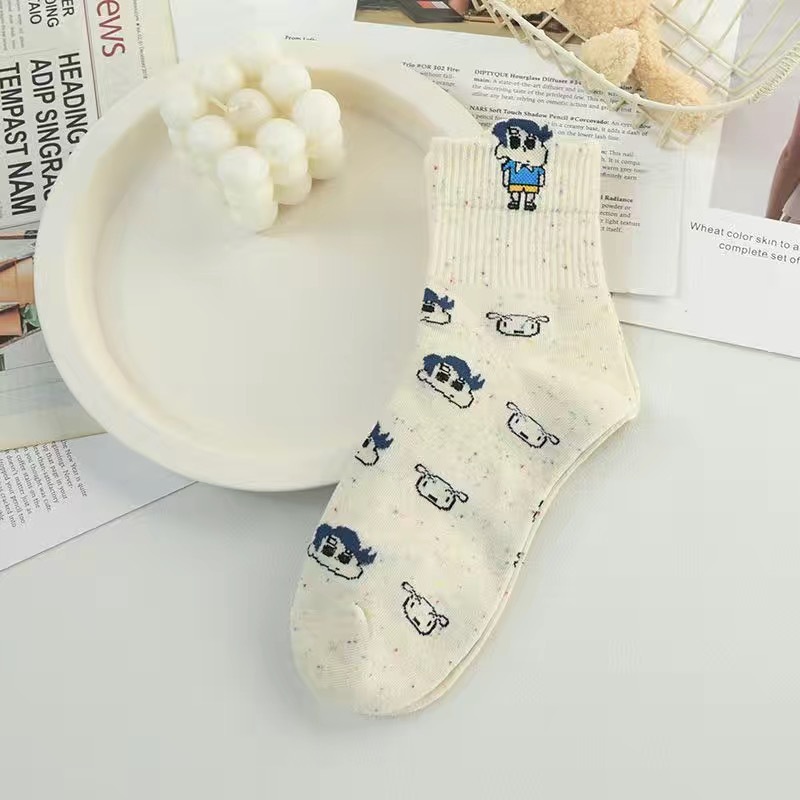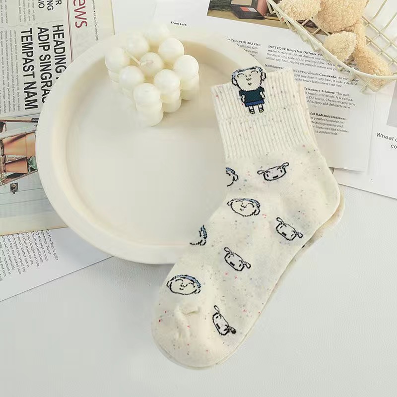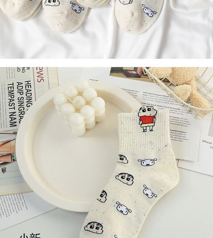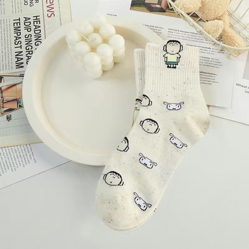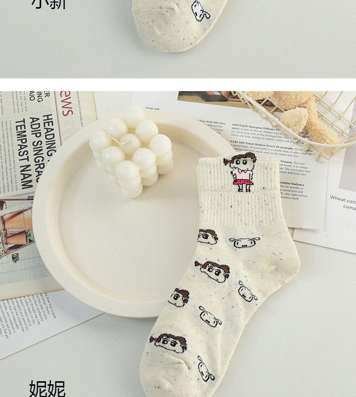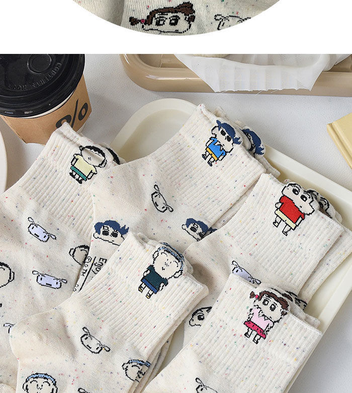 만화 양말 어린이 가을과 겨울 코튼 포인트 원사 귀여운 애니메이션 재미있는 패션 크레용 작은 새 양말