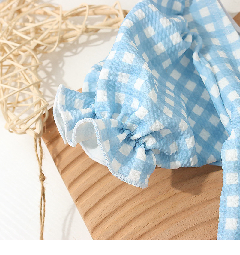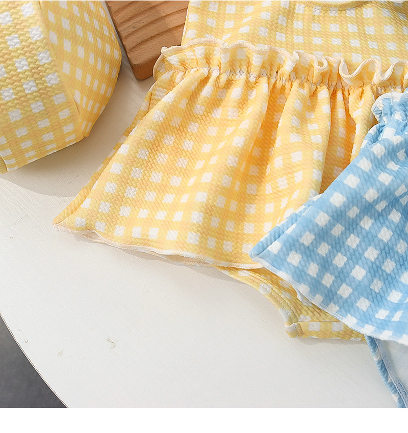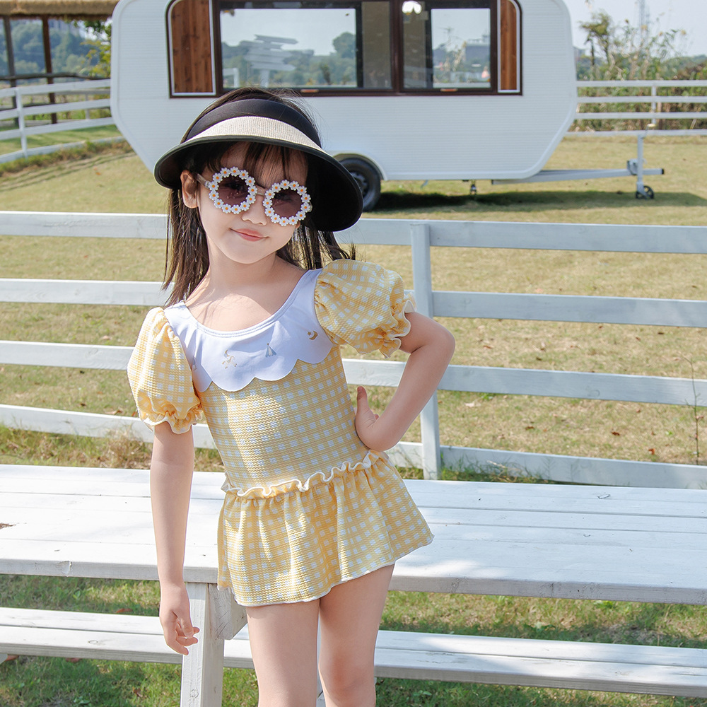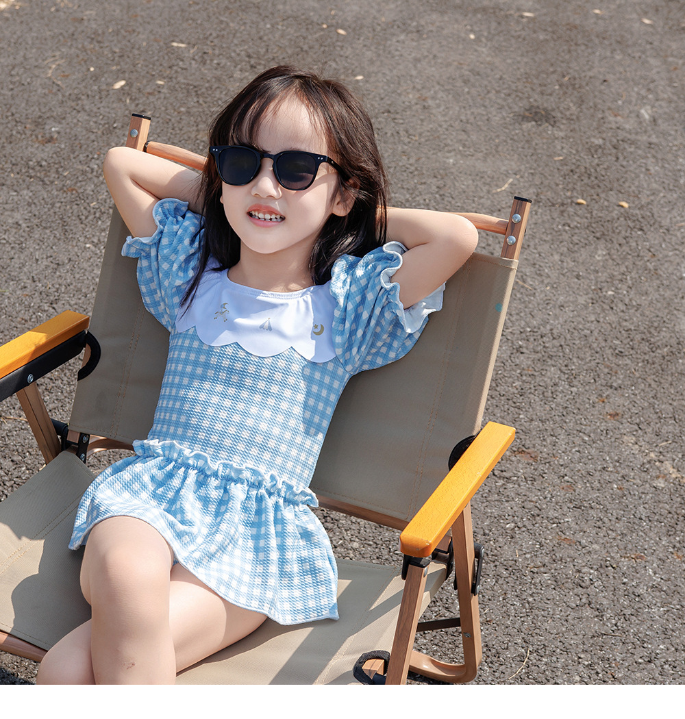 어린이 수영복 여자 아기 만화 체크 원피스 수영복 해외 수영복 도매 반팔 어린이 일본 스타일