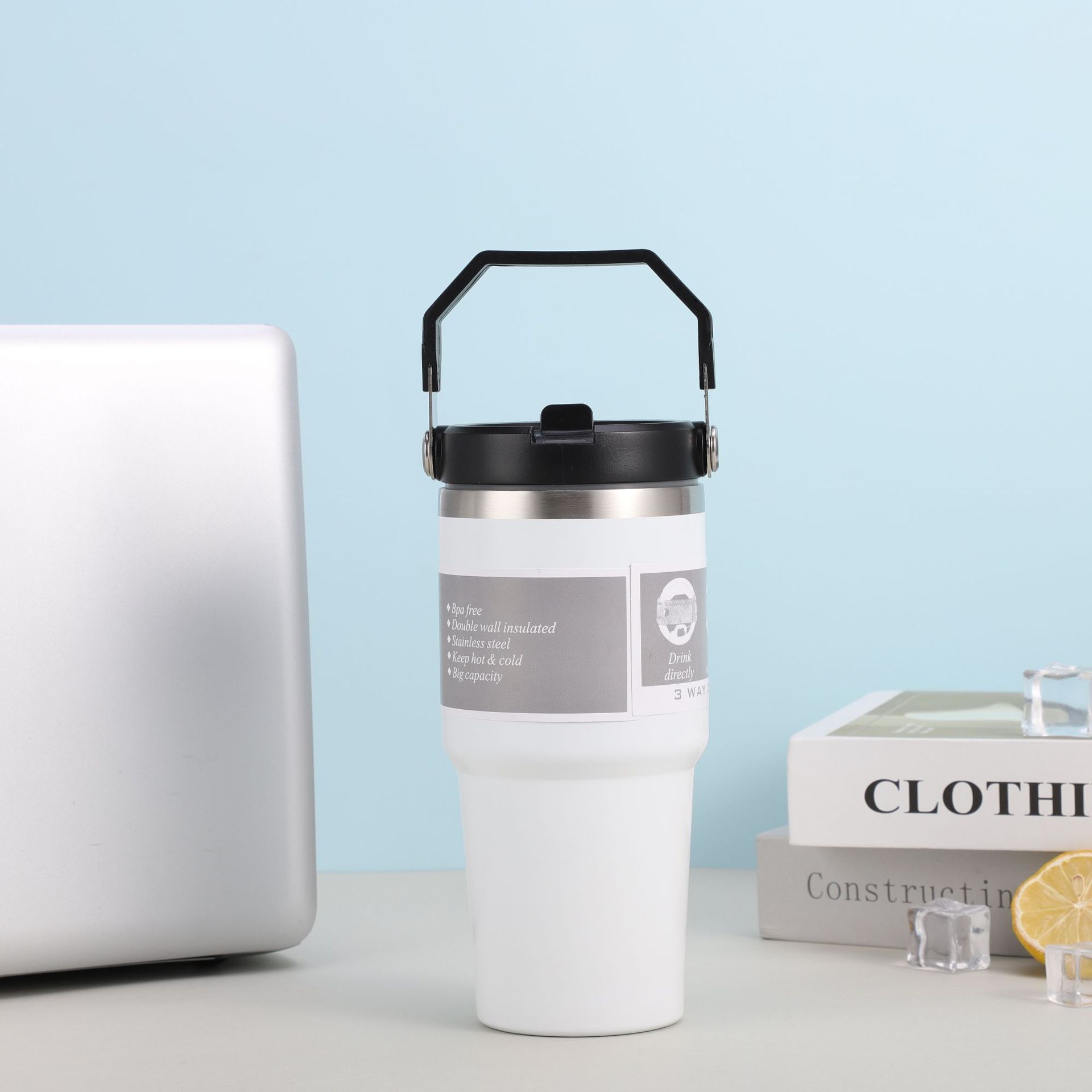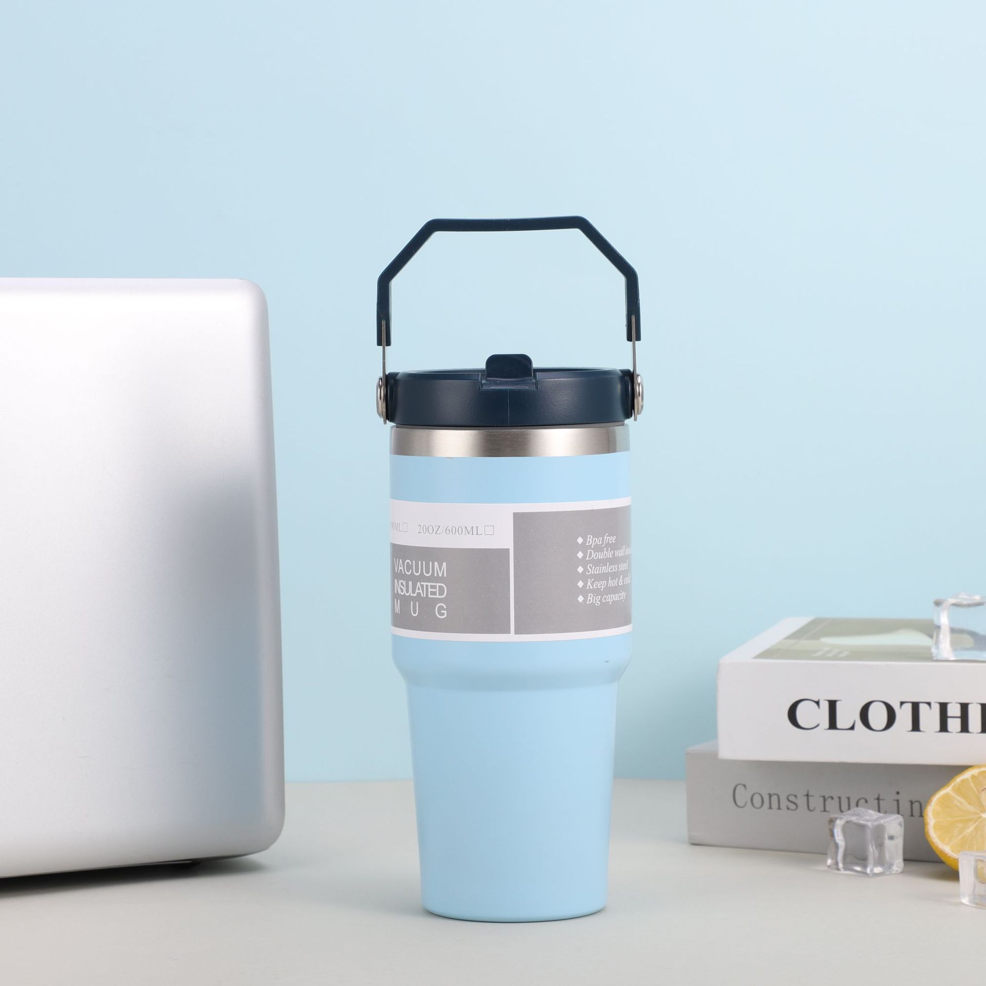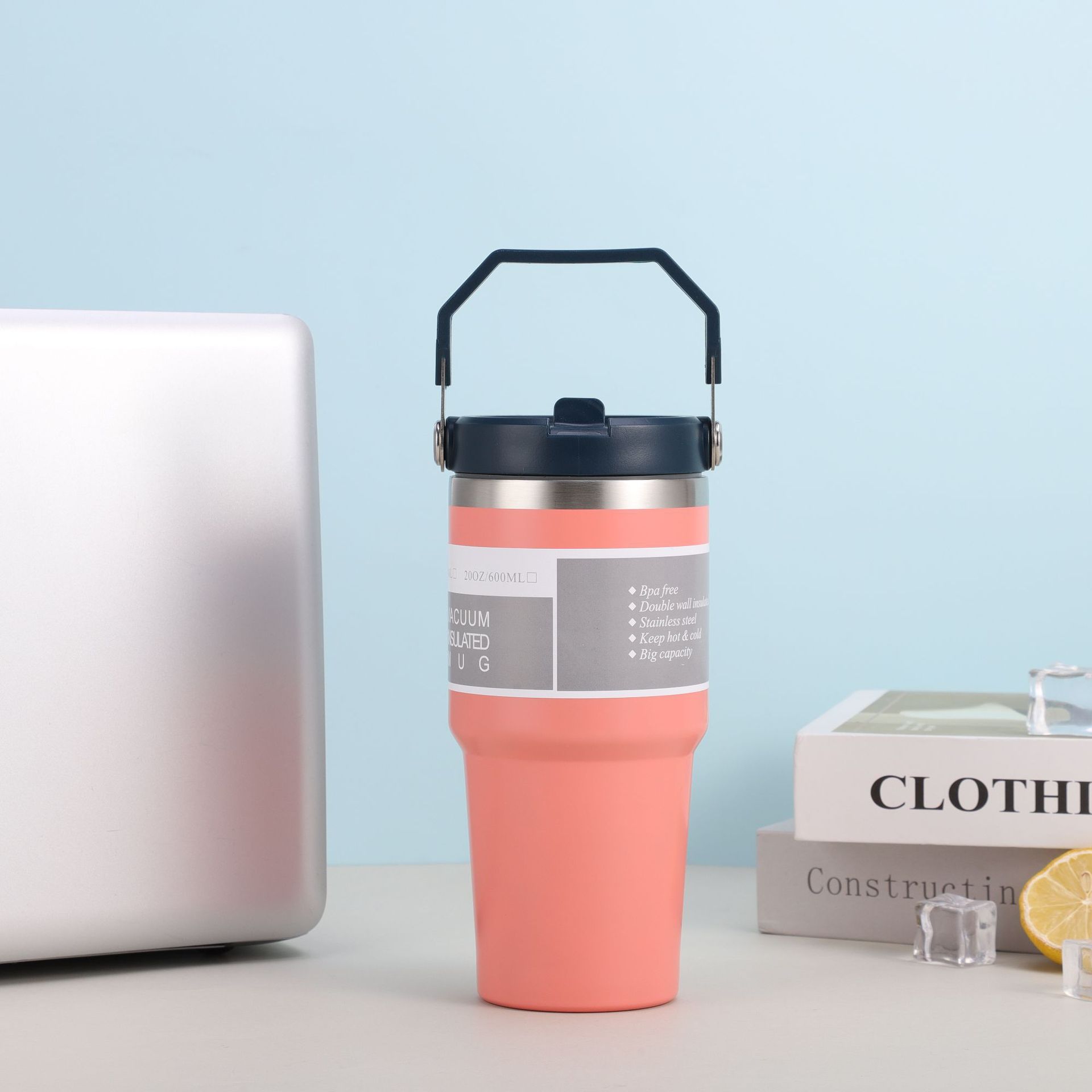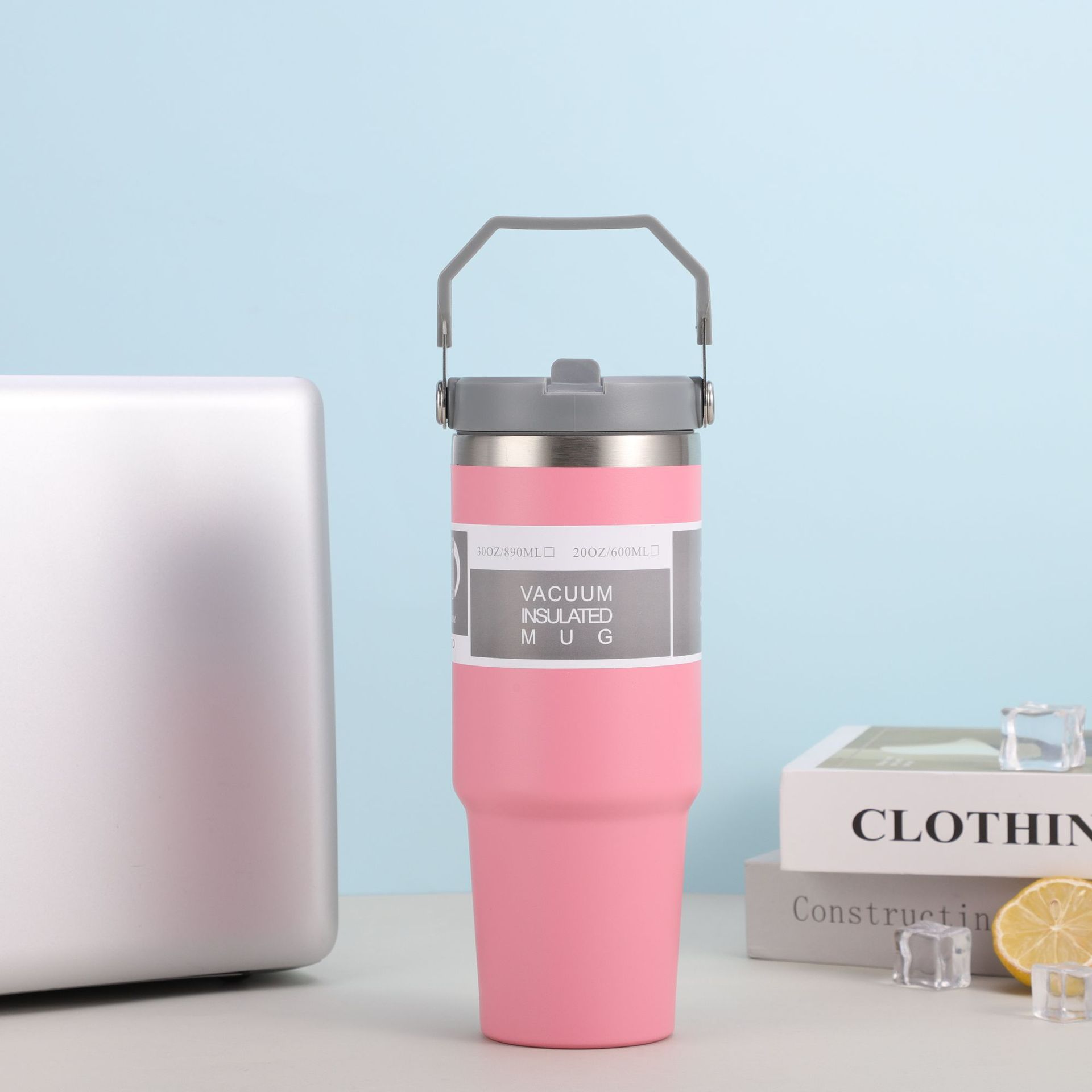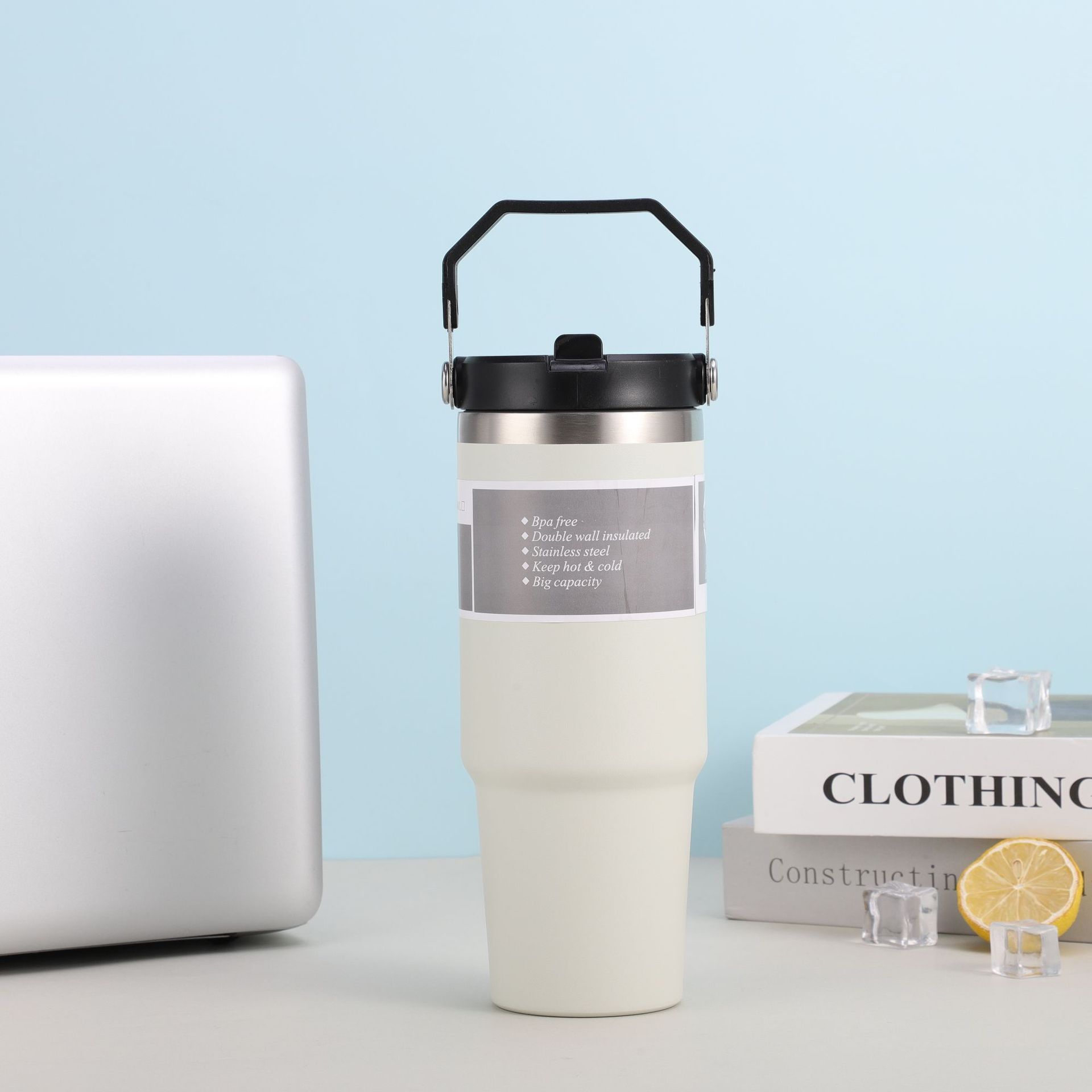 야외 휴대용 스테인레스 스틸 보온병 컵 휴대용 실리콘 손잡이 대용량 물 컵 간단한 단색 가정용 물 컵스토어 가기