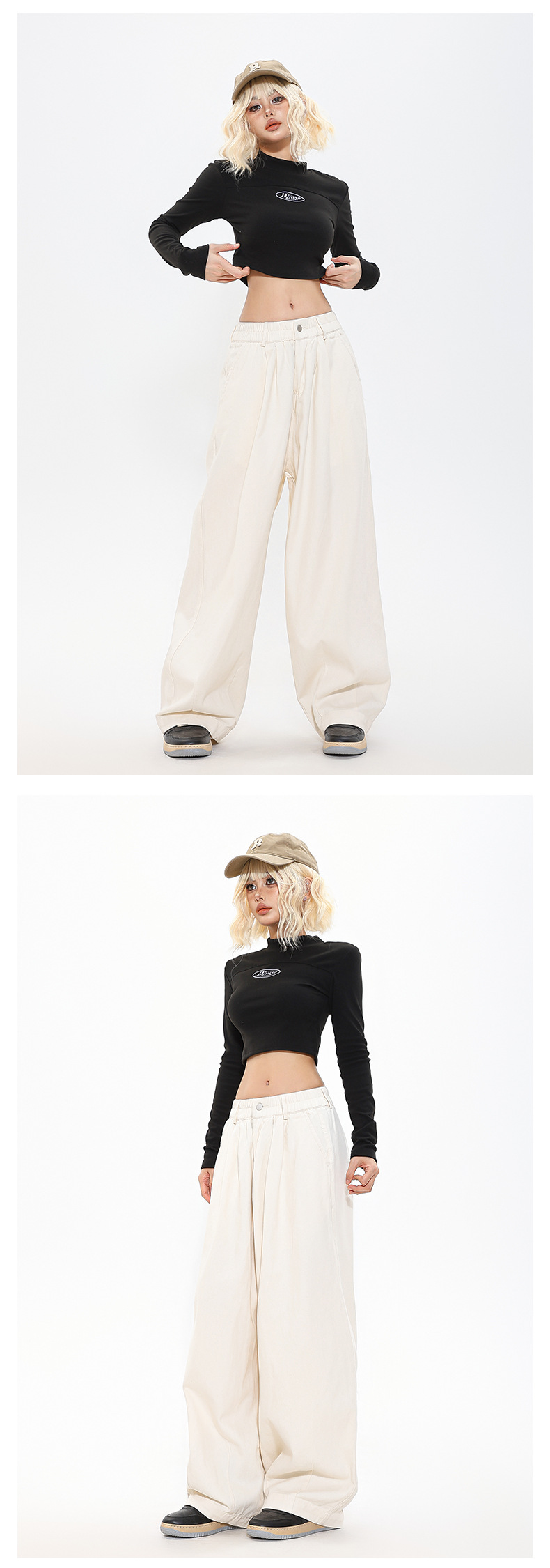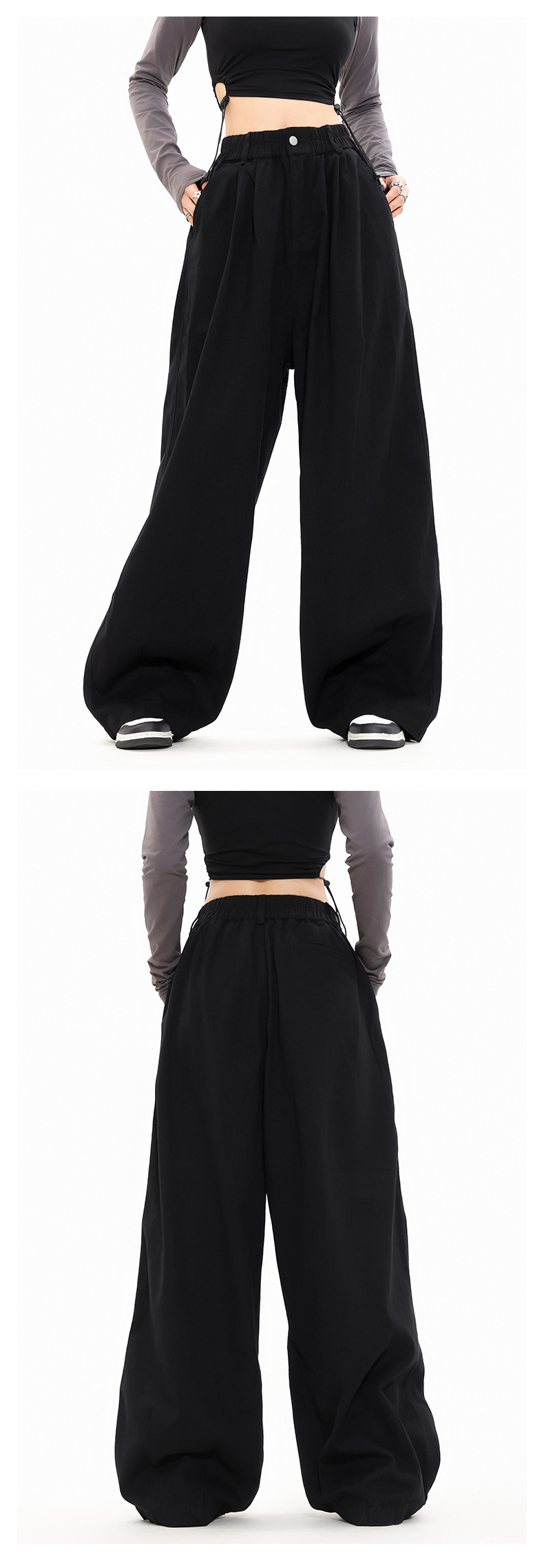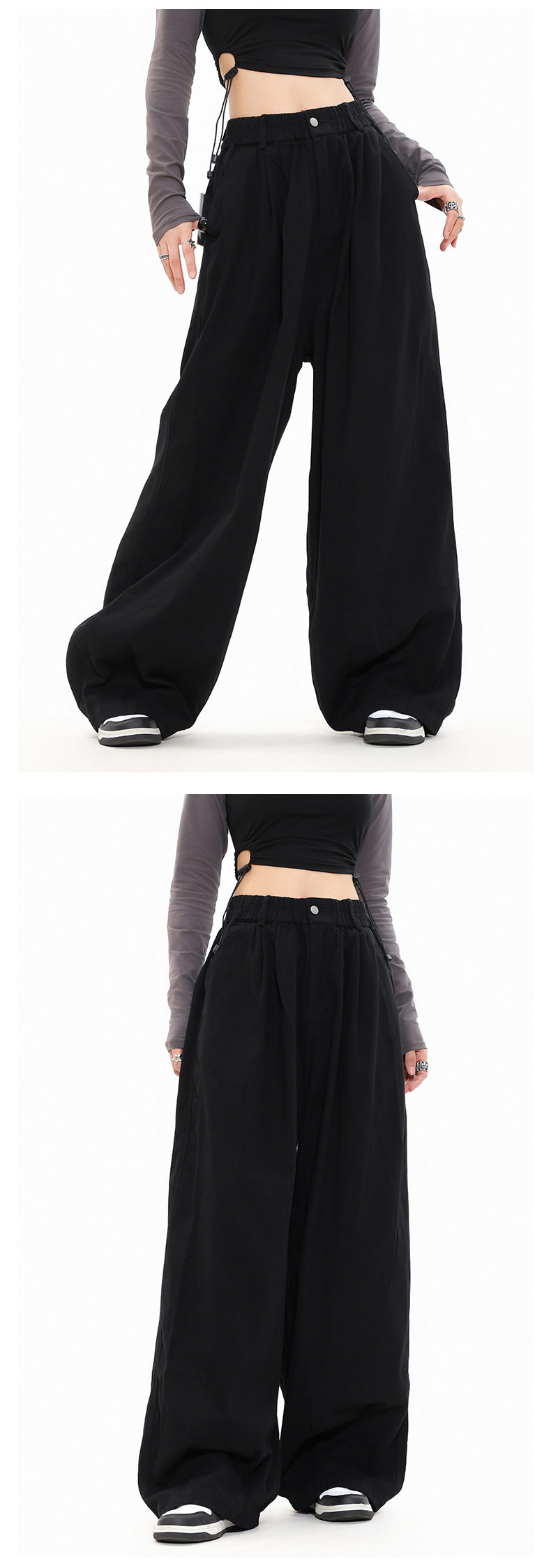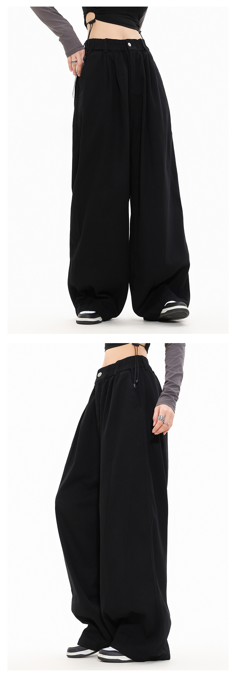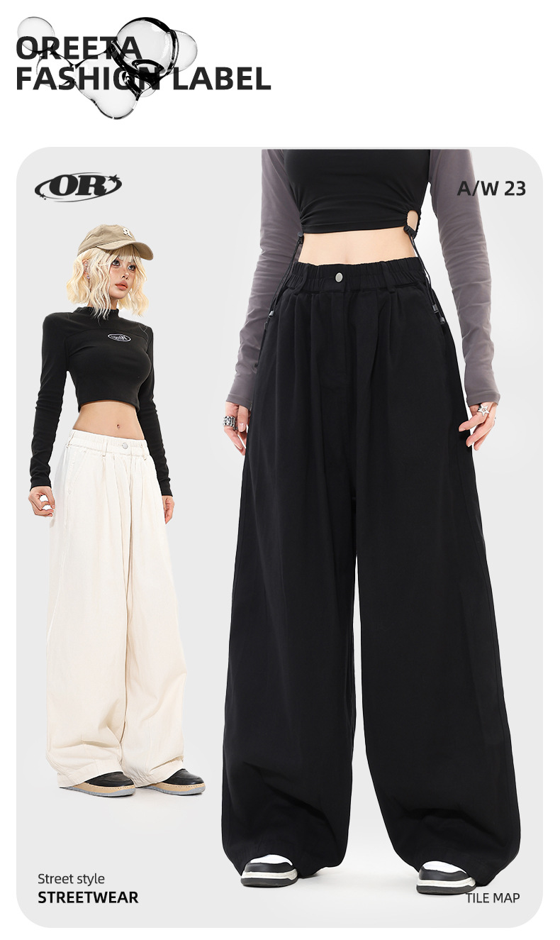 OREETA 일본 와이드 레그 팬츠 교수형 여성용 느슨한 스포츠 스트리트 댄스 팬츠 블랙 패션 브랜드 와이드 레그 캐주얼 팬츠 남성스토어 가기