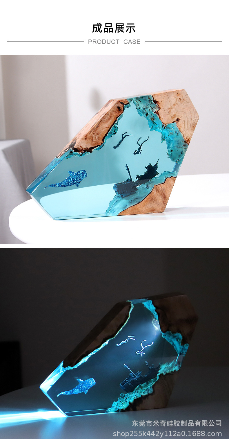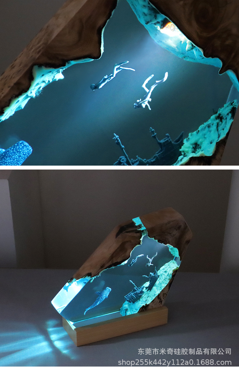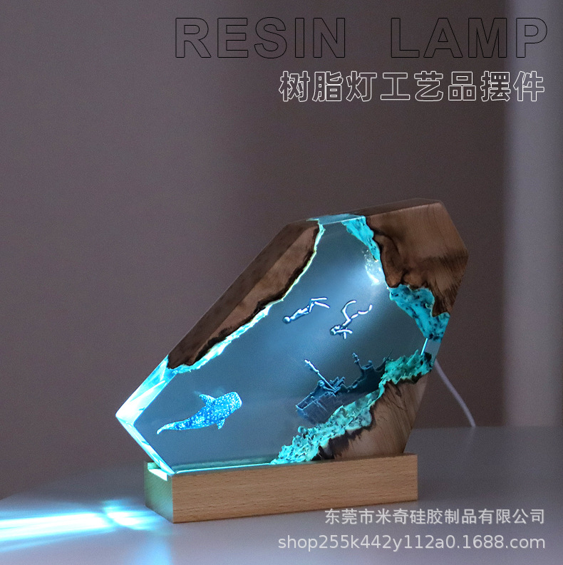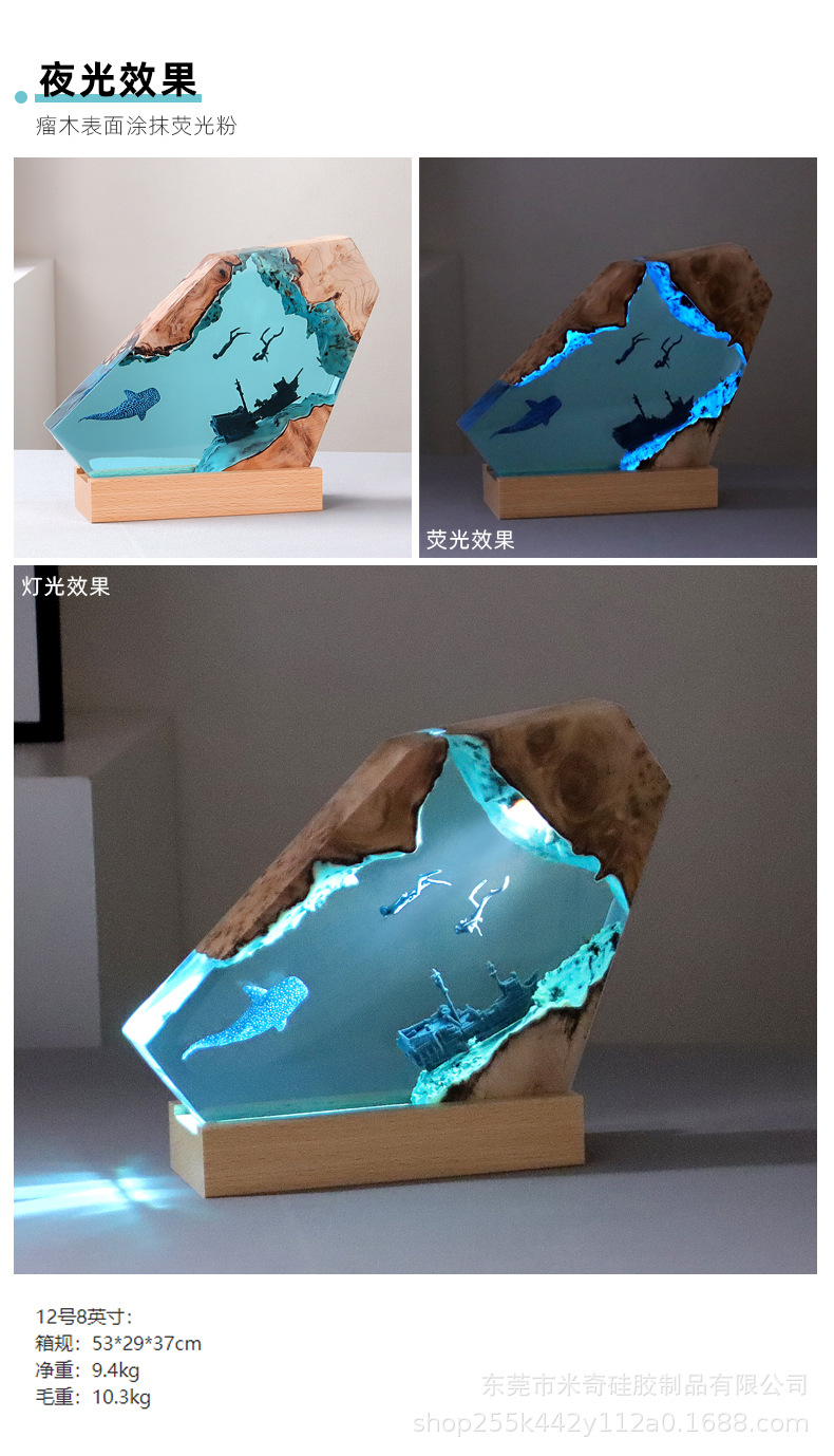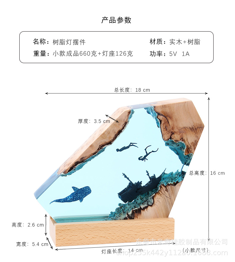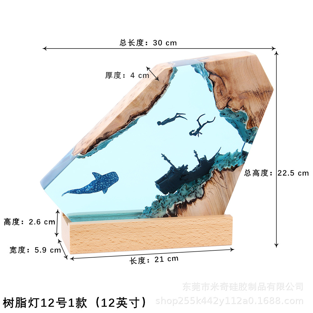 홈 액세서리 침실 사무실 데스크탑 난파선 상어 고래 해양 예술 장식품 선물 단단한 나무 수지 야간 조명스토어 가기