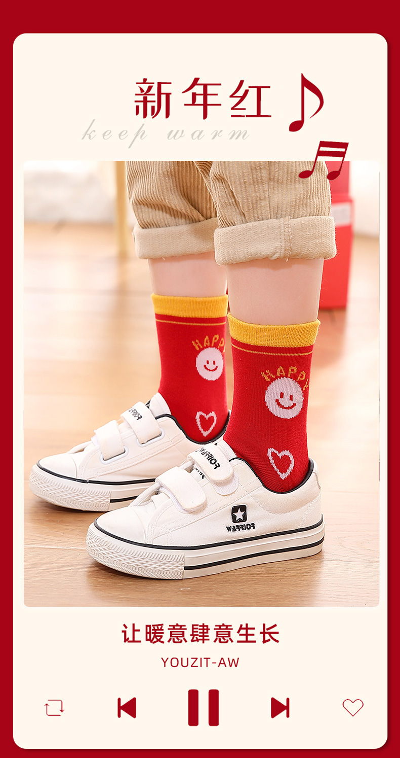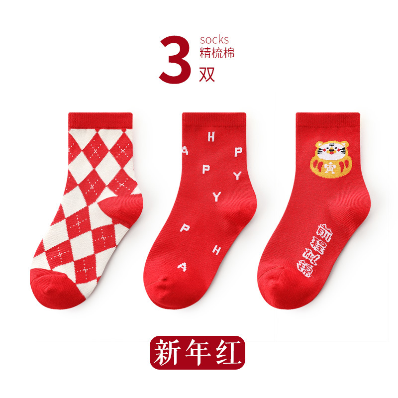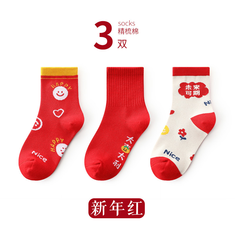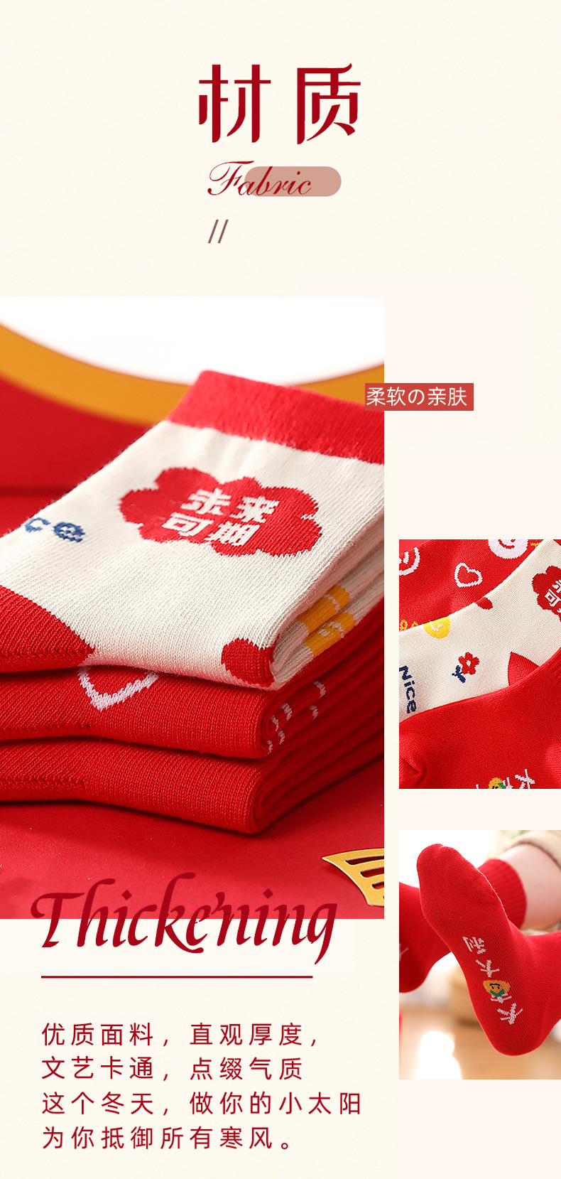 어린이 양말 새해 빨간 양말 이 생애 년 축제 만화 빨간 양말 가을과 겨울 큰 빨간 면 양말스토어 가기
