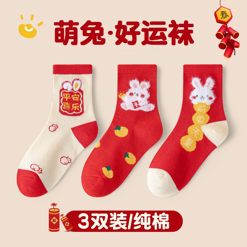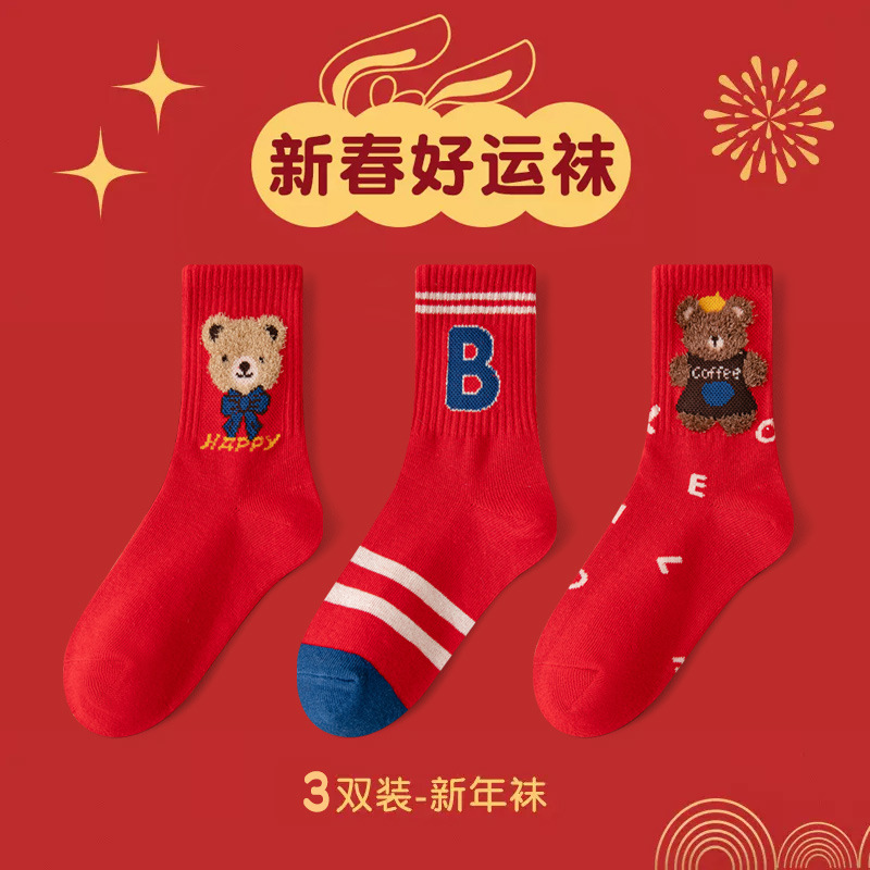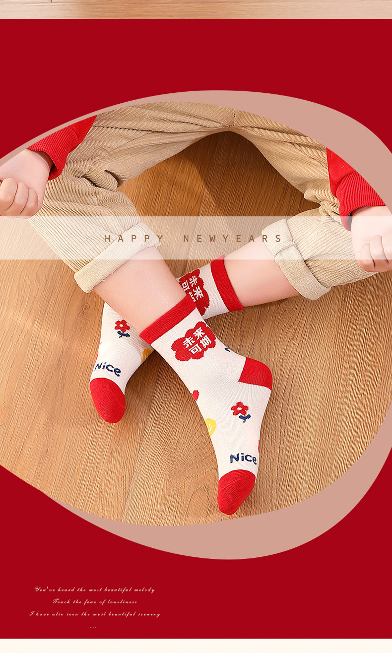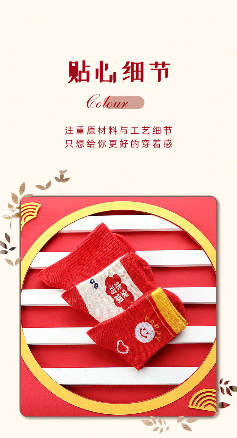어린이 양말 새해 빨간 양말 이 생애 년 축제 만화 빨간 양말 가을과 겨울 큰 빨간 면 양말스토어 가기