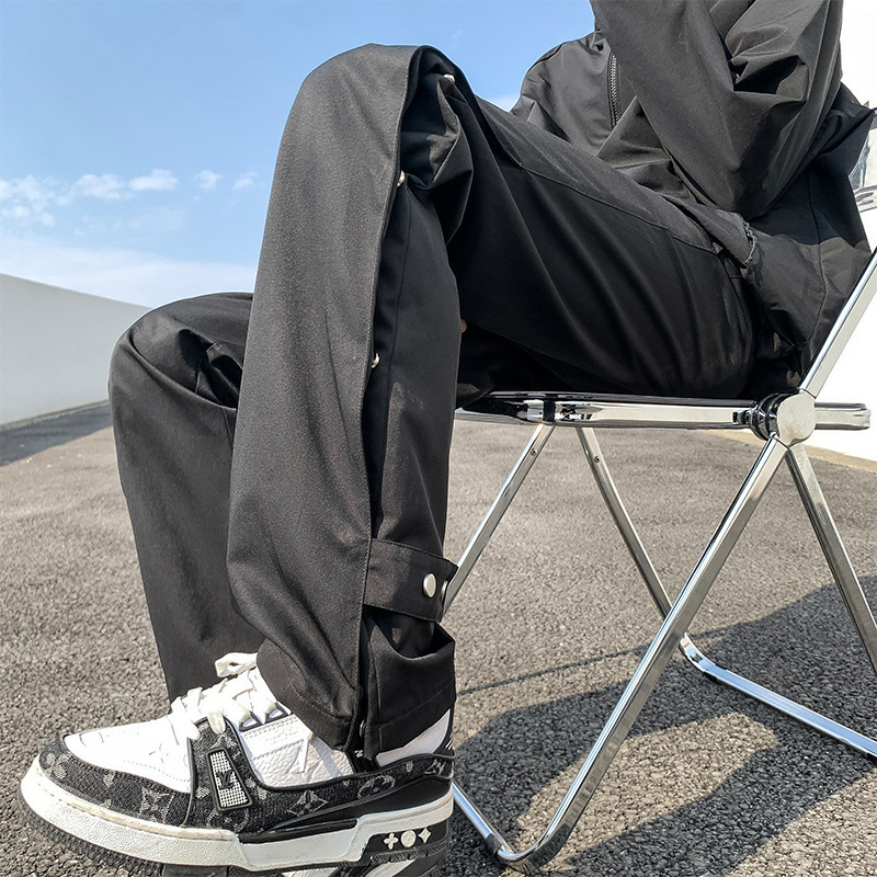 블랙 브레스트 러싱 팬츠 남성용 아메리칸 스타일 하이 스트리트 분위기 윈드 팬츠 봄과 가을 트렌디 브랜드 야기 미남 노동자 마이크로 팬츠