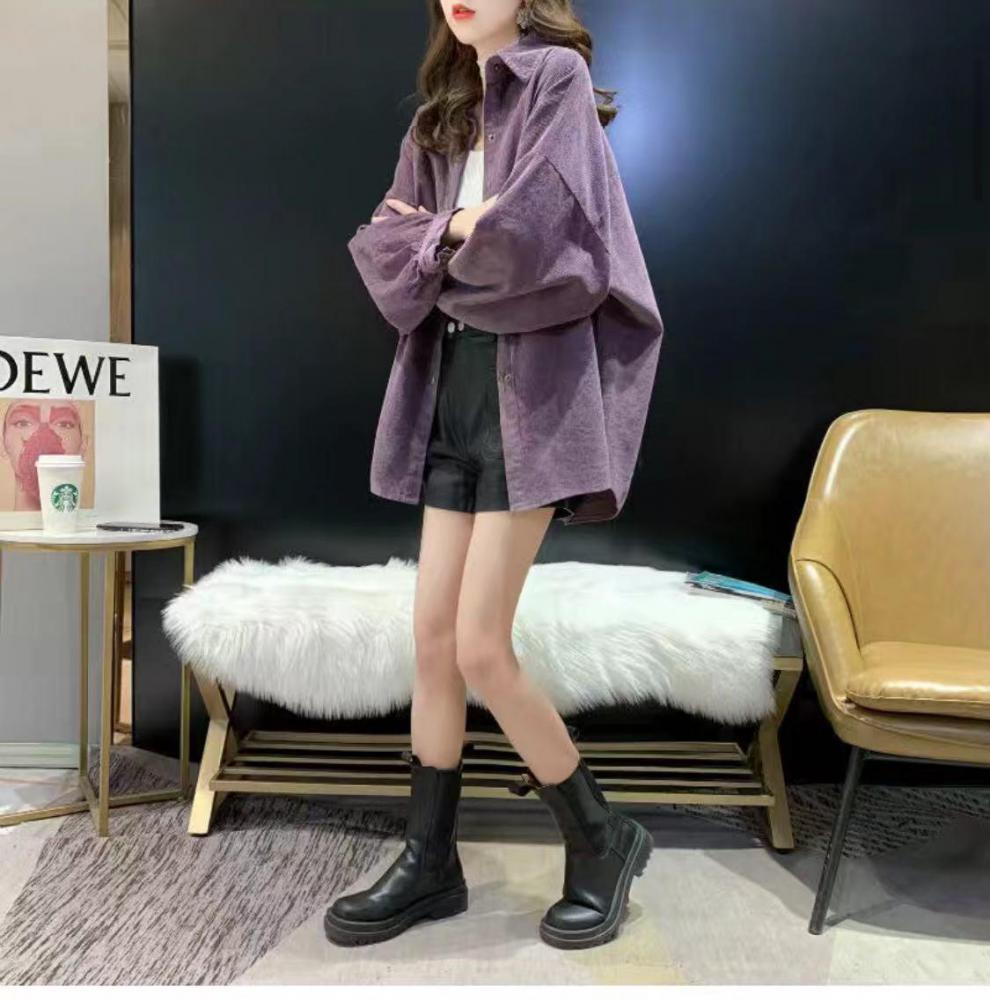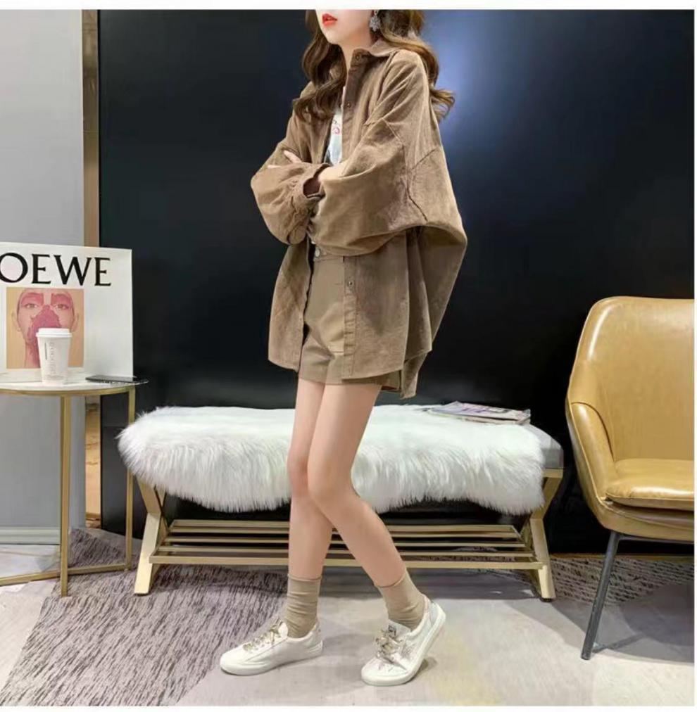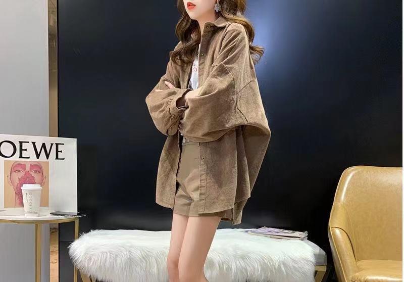 코듀로이 셔츠 여성용 2021 가을 긴팔 루즈한 레이지 탑 중간 길이 셔츠 재킷스토어 가기