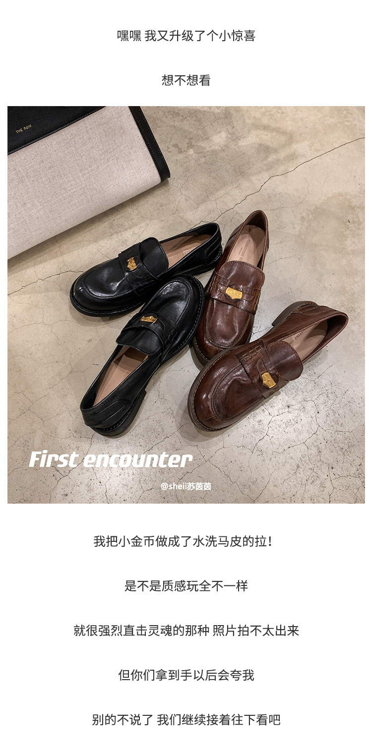 재고 많음~[포도엄마와 같은 스타일]~말가죽 레트로 광택 작은 금화 로퍼 여성용 작은 가죽신스토어 가기