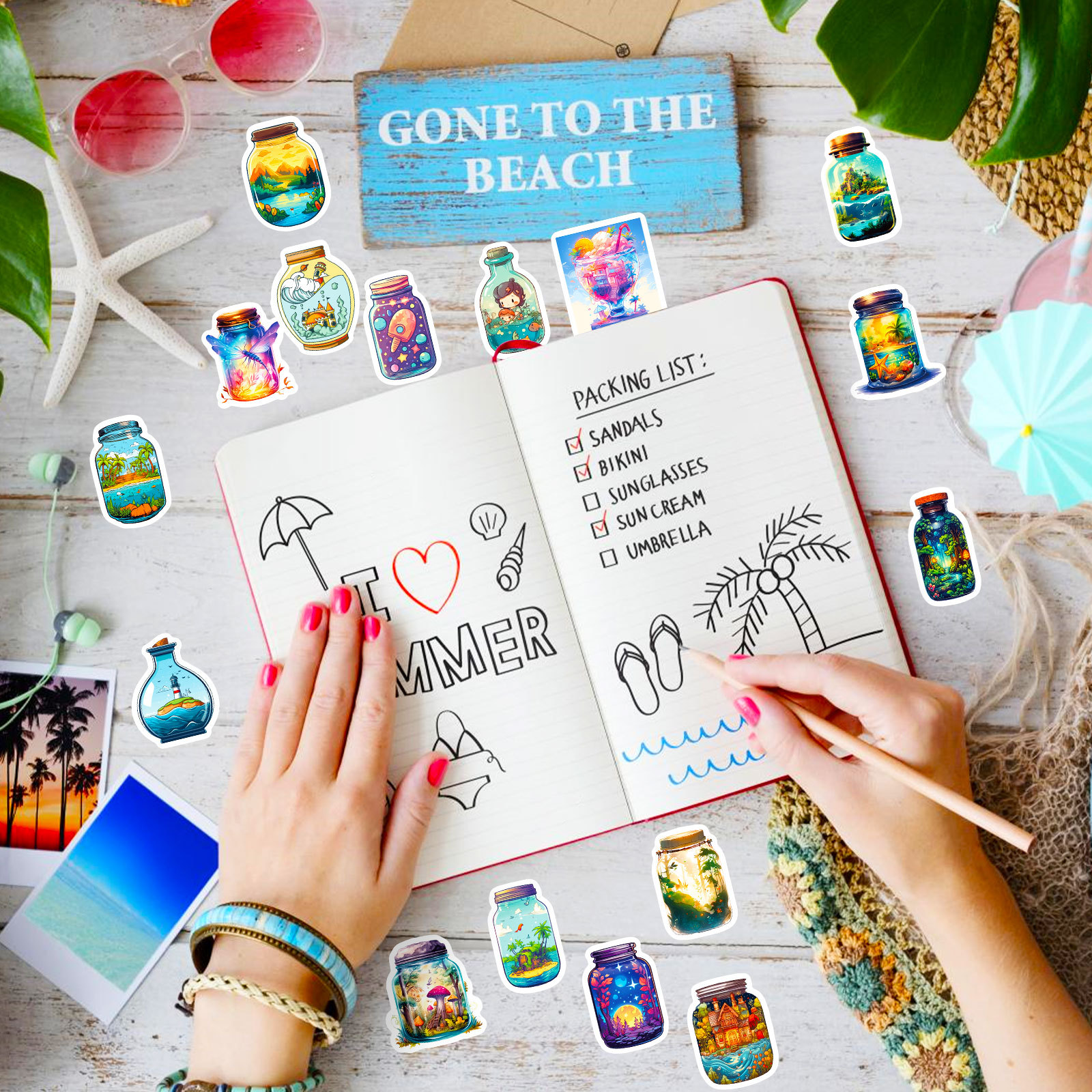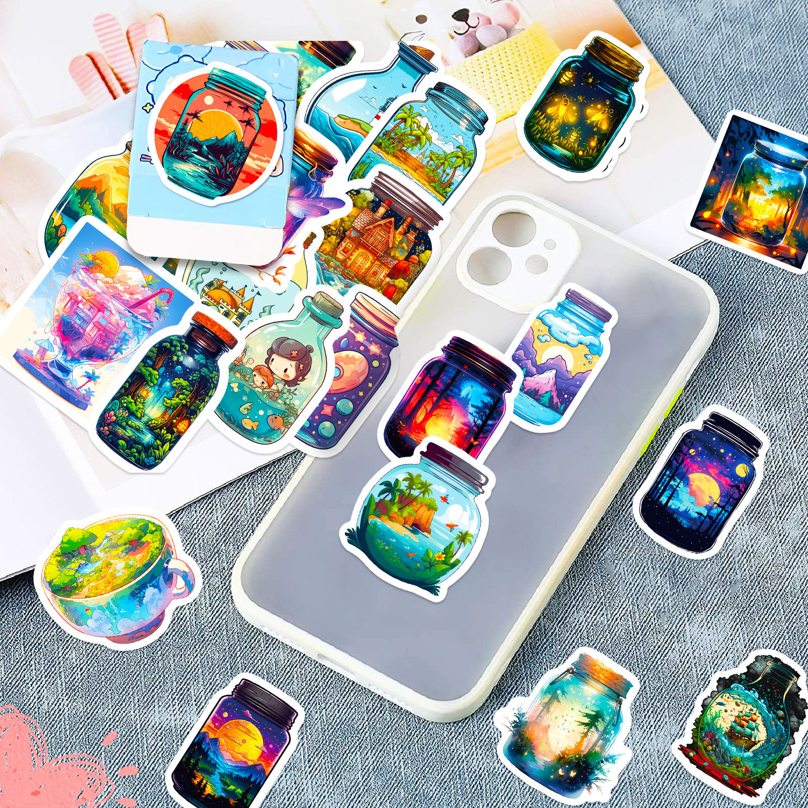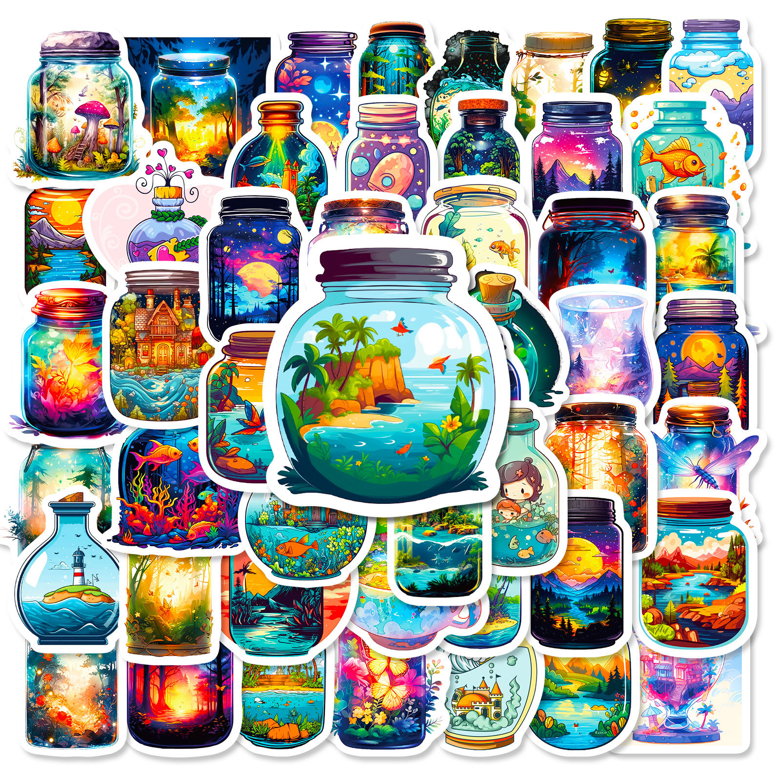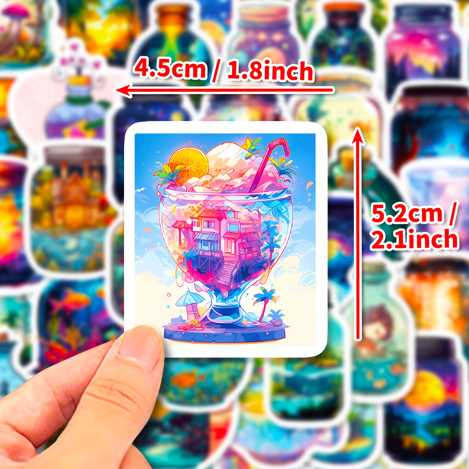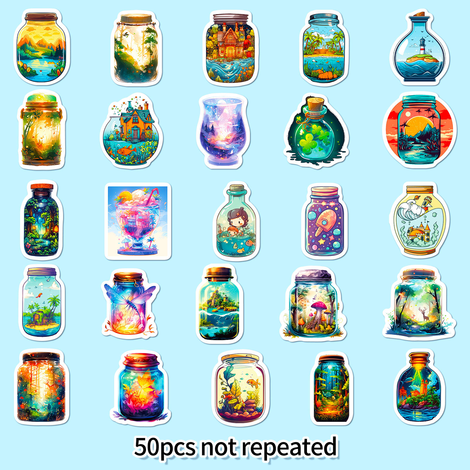 50 신선한 만화 병 다채로운 세계 스티커 크로스-국경 어린이 수하물 컴퓨터 휴대 전화 장식 스티커스토어 가기