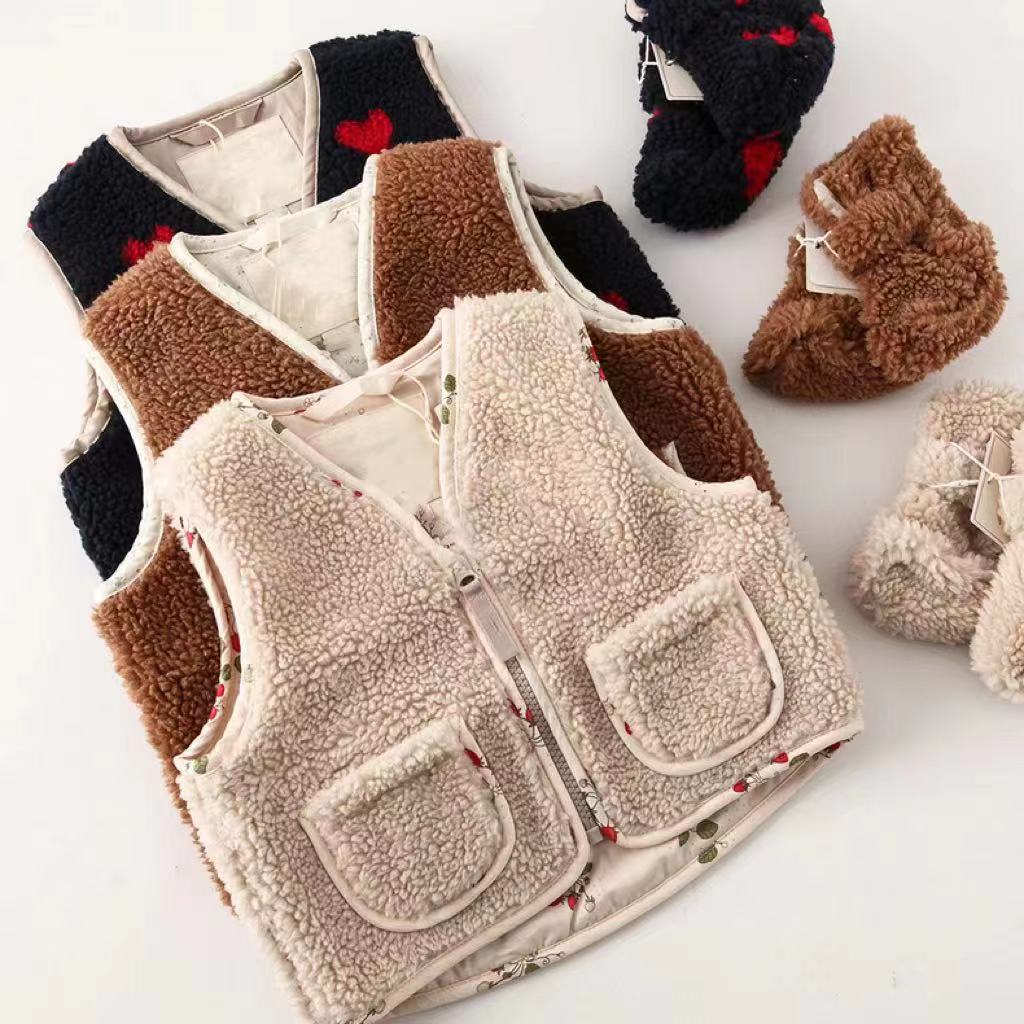 • 블루 러브 양고기 양털 조끼