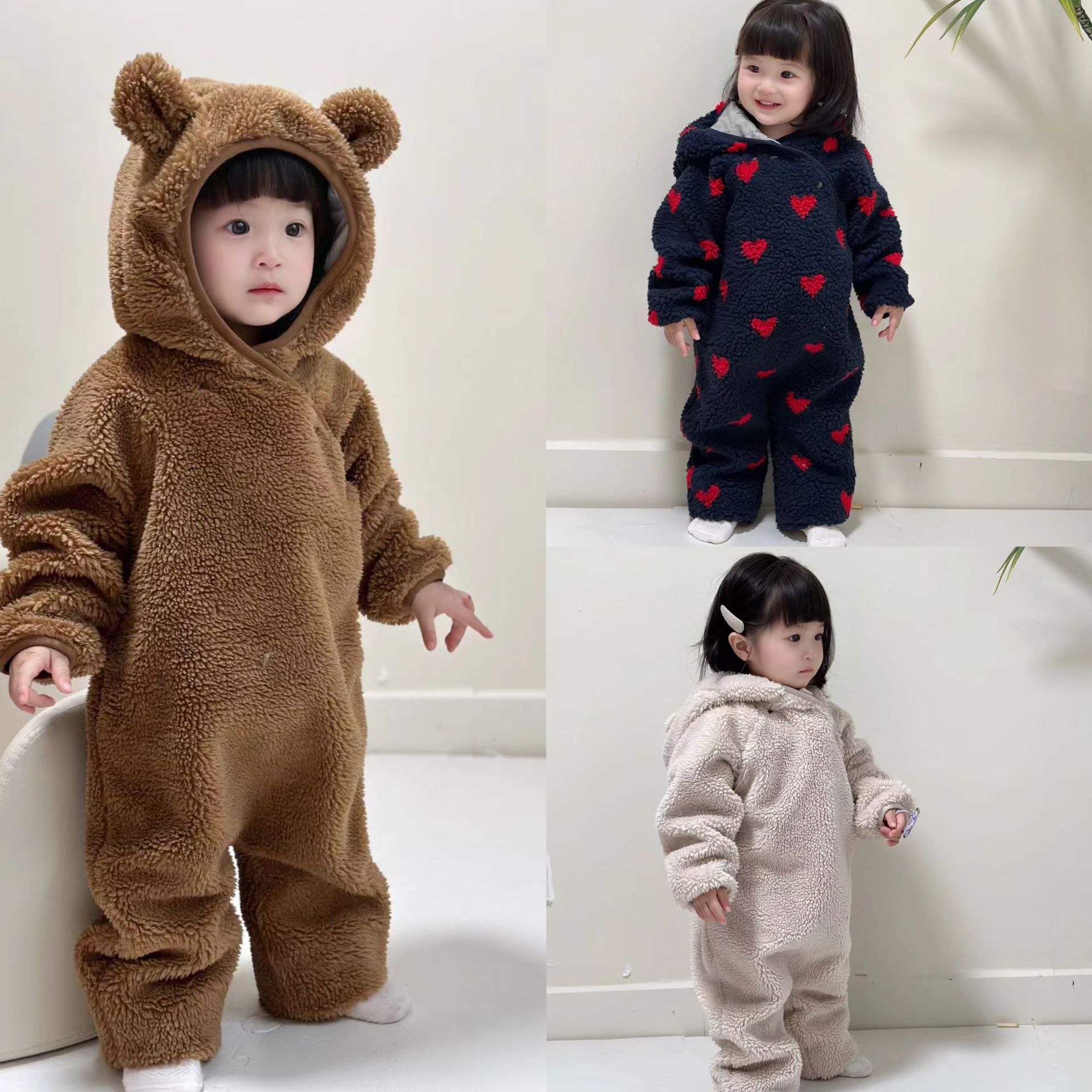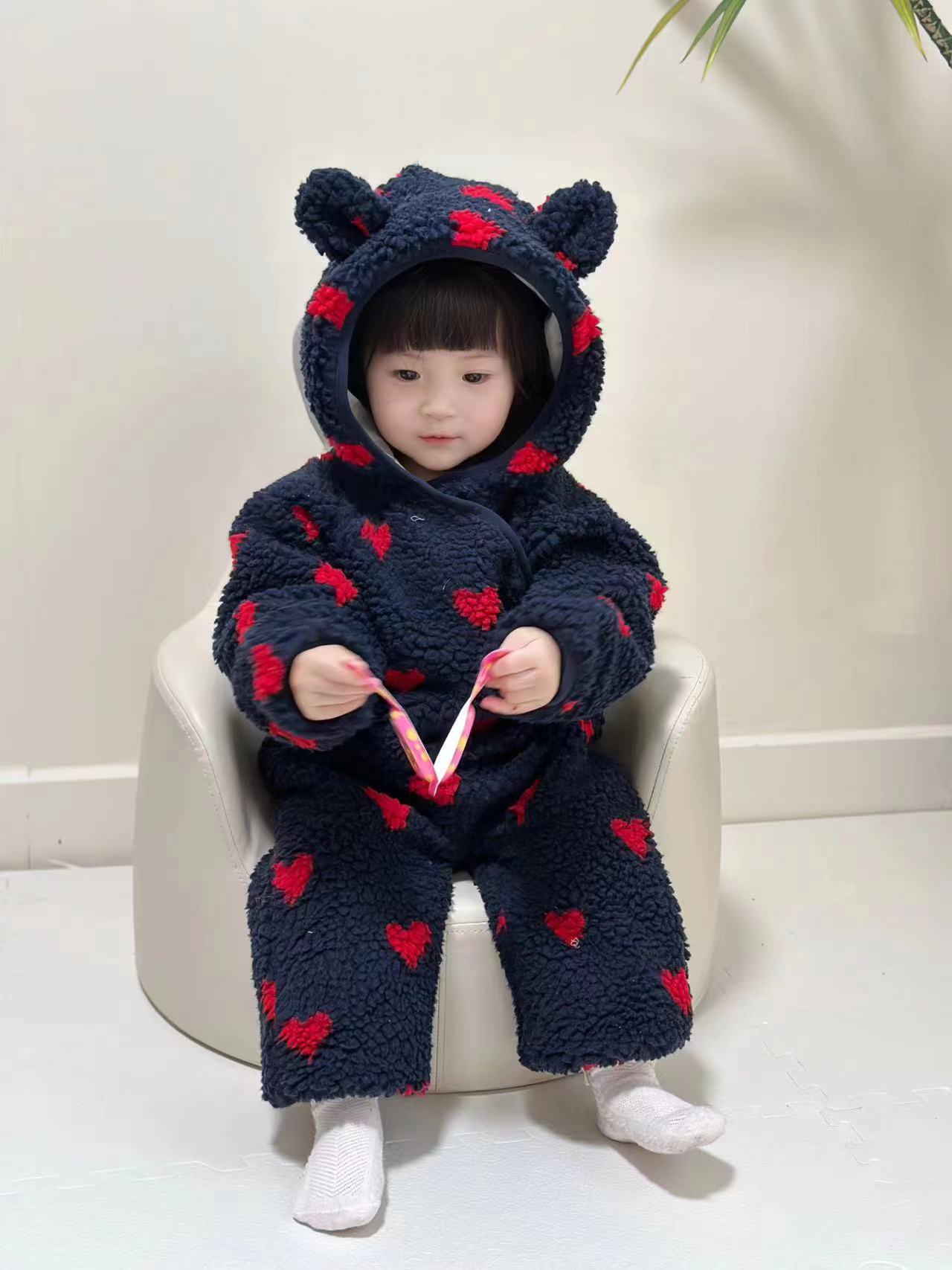 BabyStormi 가을 겨울 아동용 코트, 양털 두꺼운 상의, 영유아용 점프슈트, 외출복, 롬퍼스토어 가기