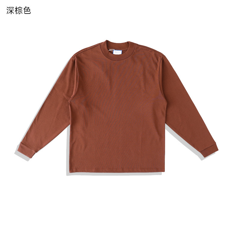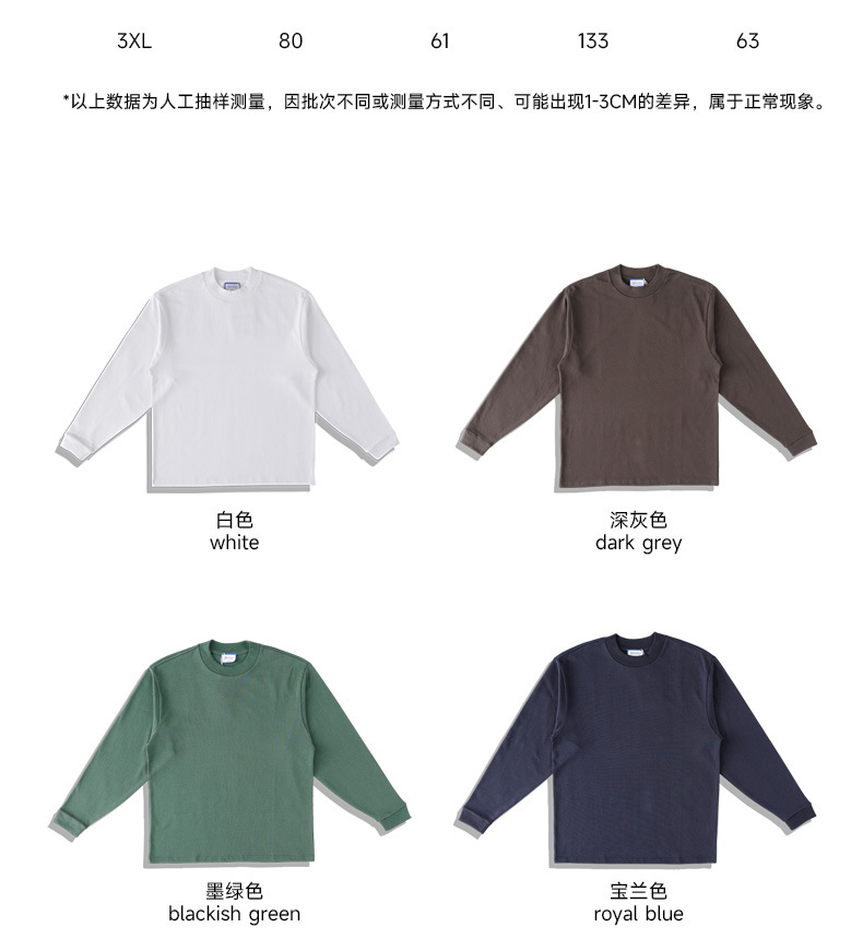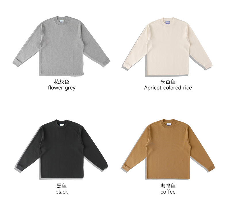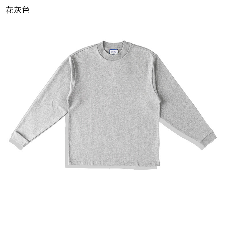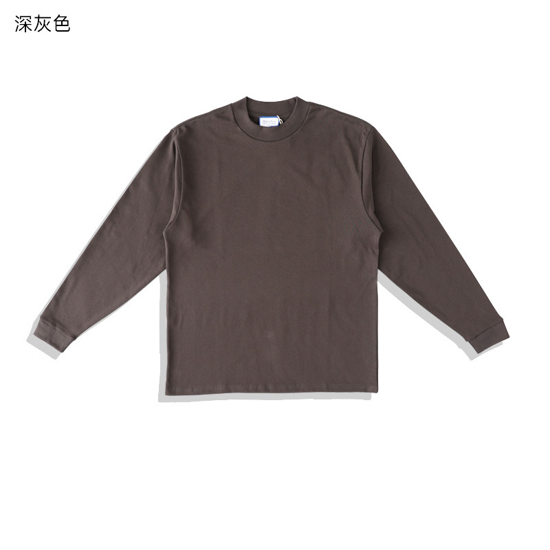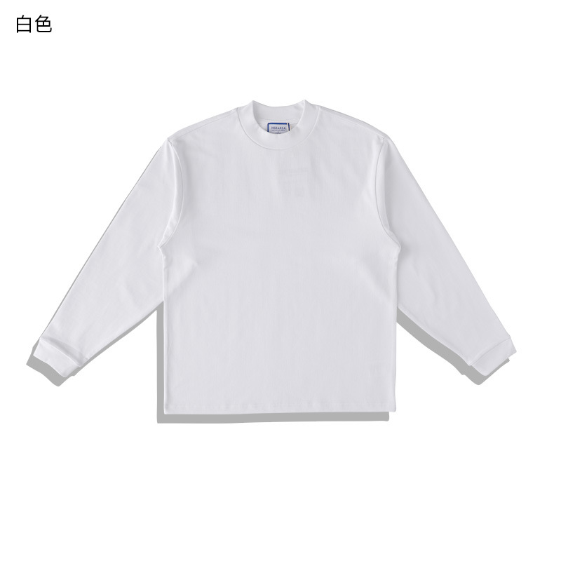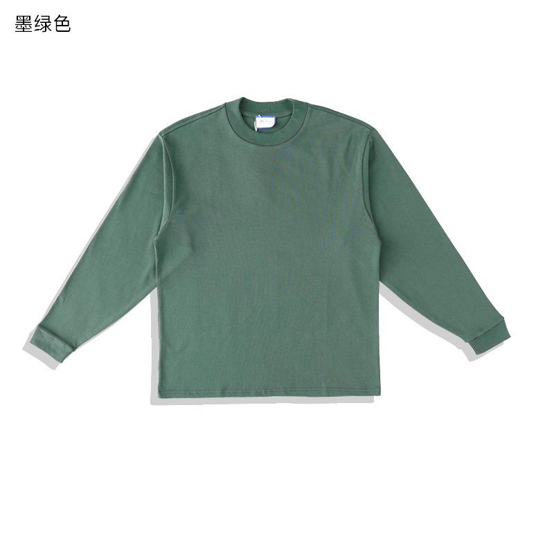400g 무거운 면 긴 소매 티셔츠 아메리칸 스타일 작은 칼라 특대 느슨한 플러스 사이즈 단색 남성용 기본 셔츠스토어 가기
