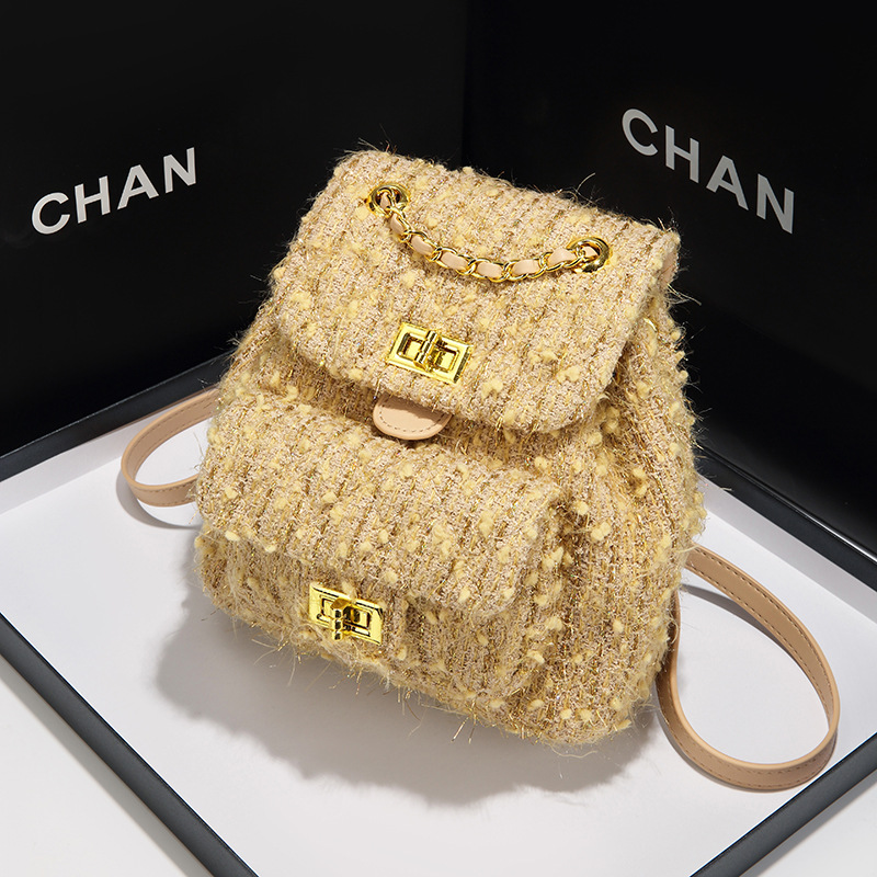 여성용 한국 스타일 모직 가방 2025 봄 여름 신상 틈새 디자인 체인 백팩 다기능 숄더백