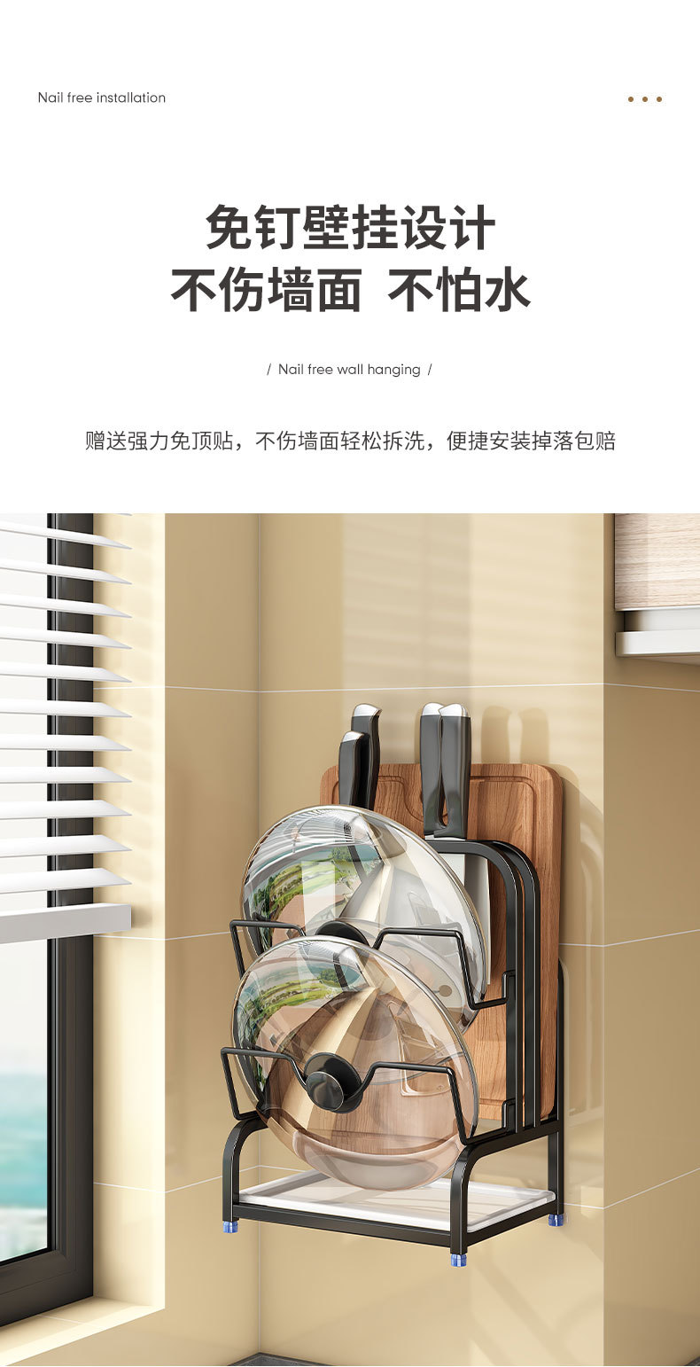 냄비 뚜껑 선반 펀치 프리 벽걸이 다기능 주방 수납 랙 모루 도마 다층 보관 유물