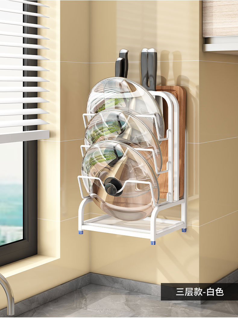 • 플래그십 화이트 3 층 벽걸이 형 냄비 커버 나이프 홀더