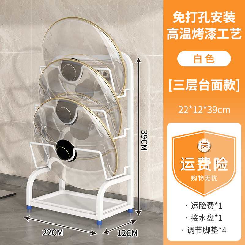 • 표준 흰색 3 층 조리대 냄비 커버 랙