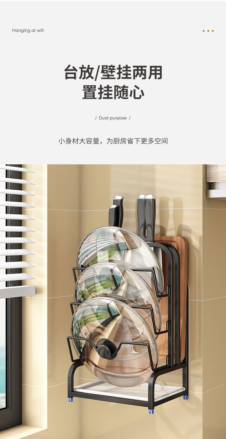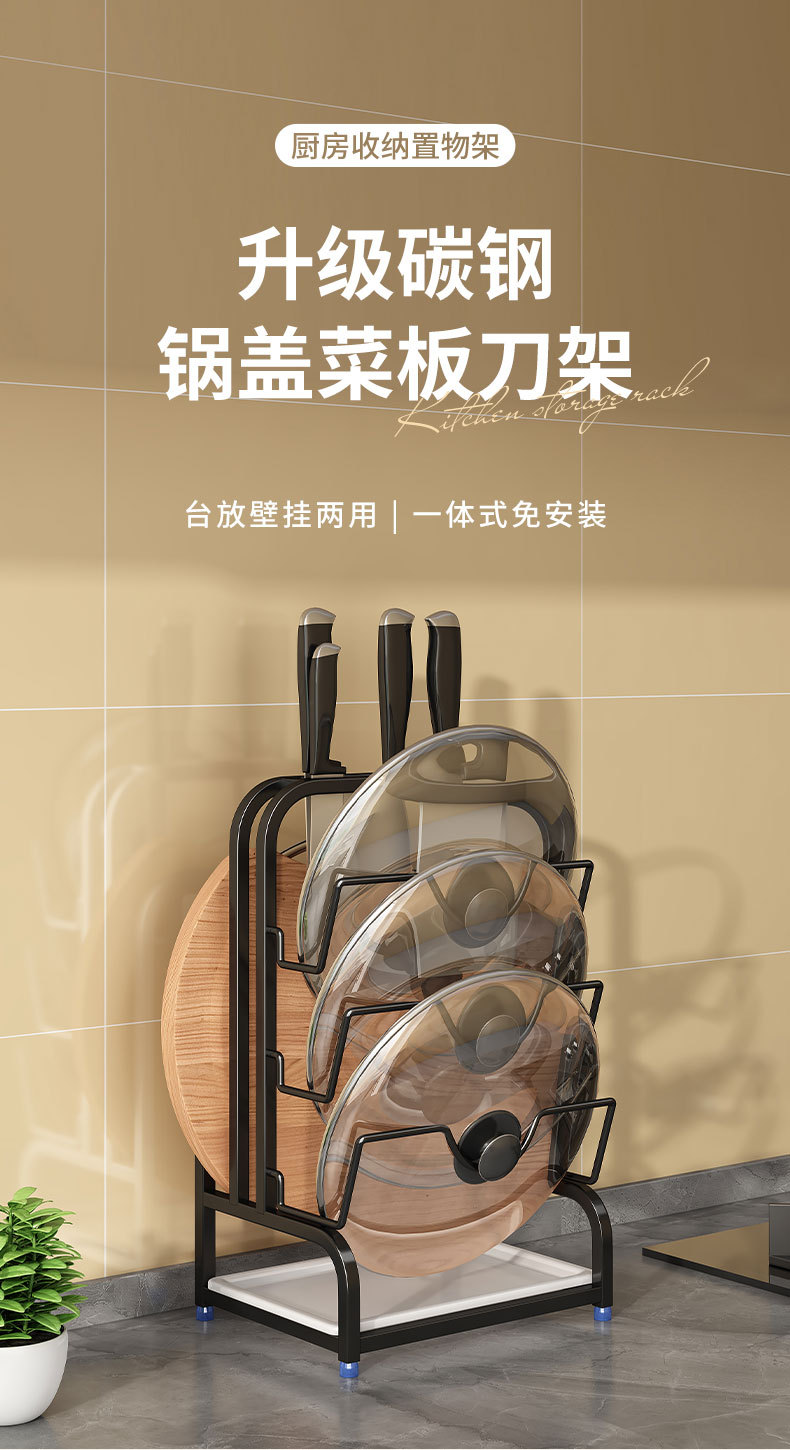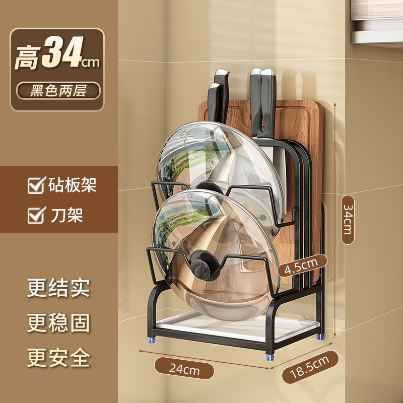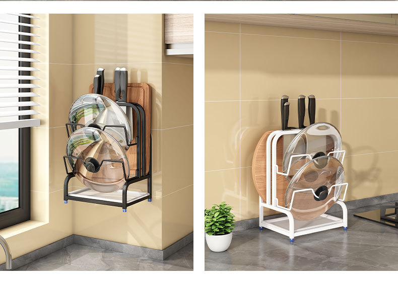 • 플래그십 블랙 2 층 벽걸이 형 냄비 커버 나이프 홀더