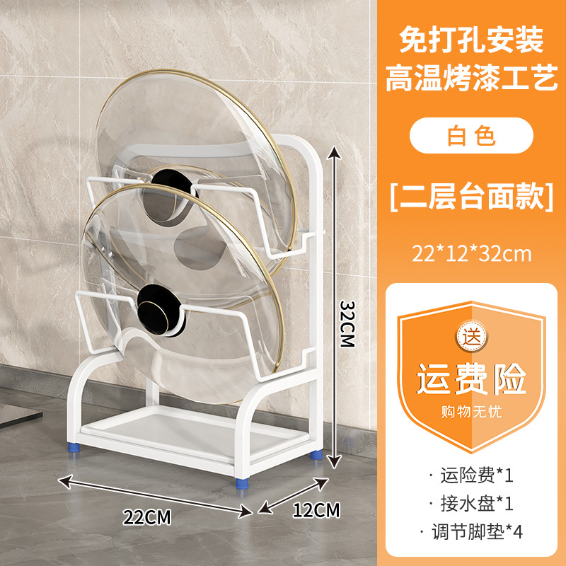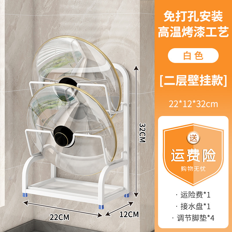 • 표준 흰색 2 층 벽걸이 형 냄비 커버 랙