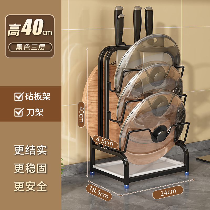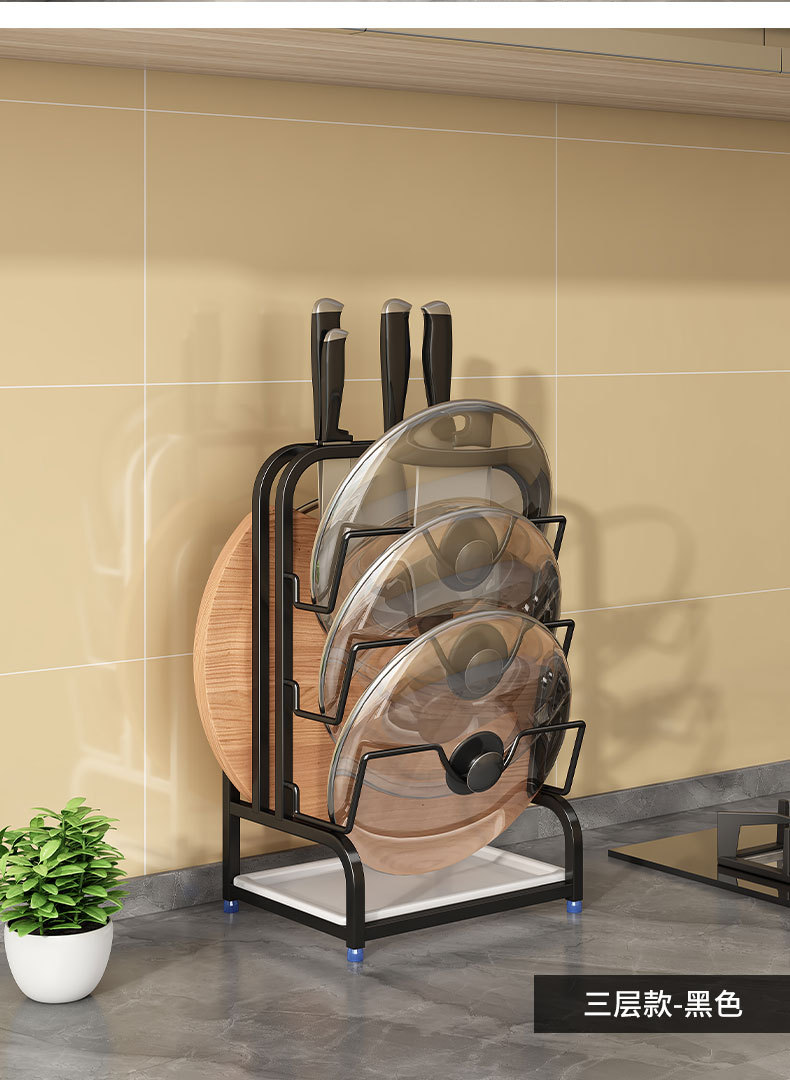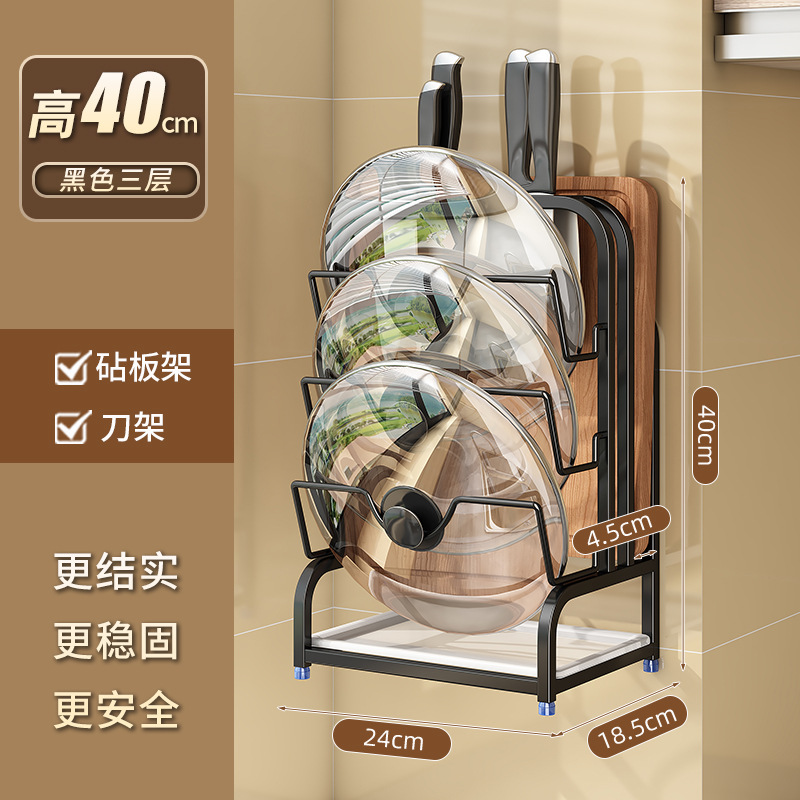 • 플래그십 블랙 3 층 벽걸이 냄비 커버 나이프 홀더