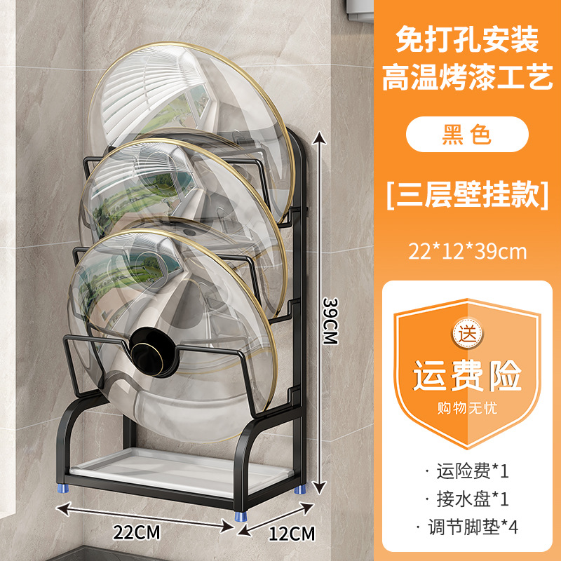 • 표준 검정색 3 층 벽걸이 형 냄비 커버 랙