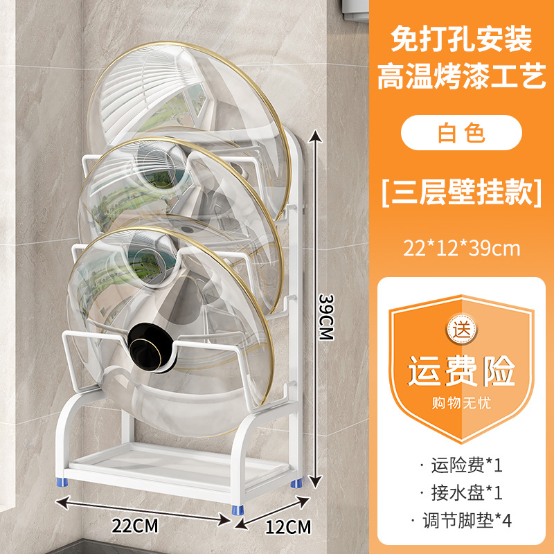 • 표준 흰색 3 층 벽걸이 형 냄비 커버 랙