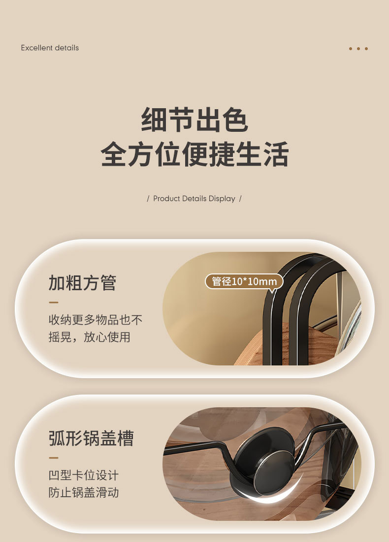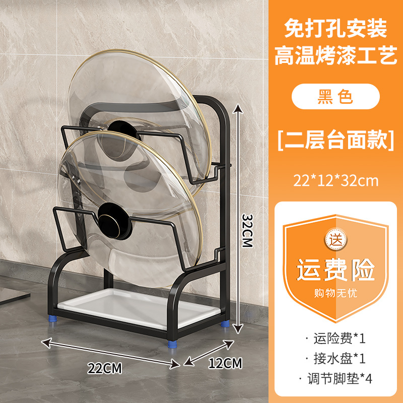 • 표준 검정색 2 층 조리대 냄비 커버 랙