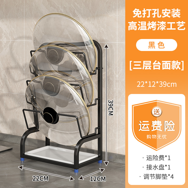 • 표준 검정색 3 층 조리대 냄비 뚜껑 랙