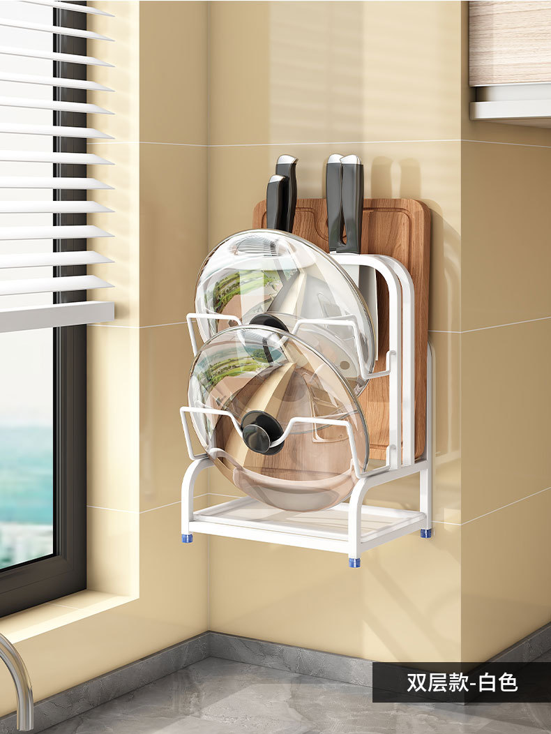 • 플래그십 화이트 2 층 벽걸이 냄비 커버 나이프 홀더