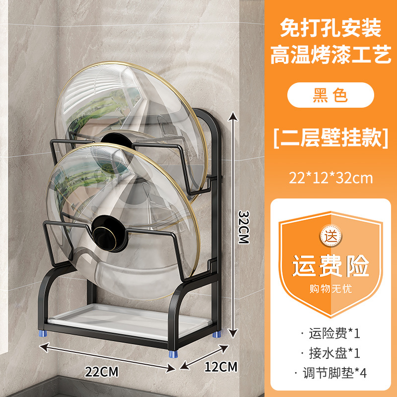 • 표준 검정색 2 층 벽걸이 형 냄비 커버 랙