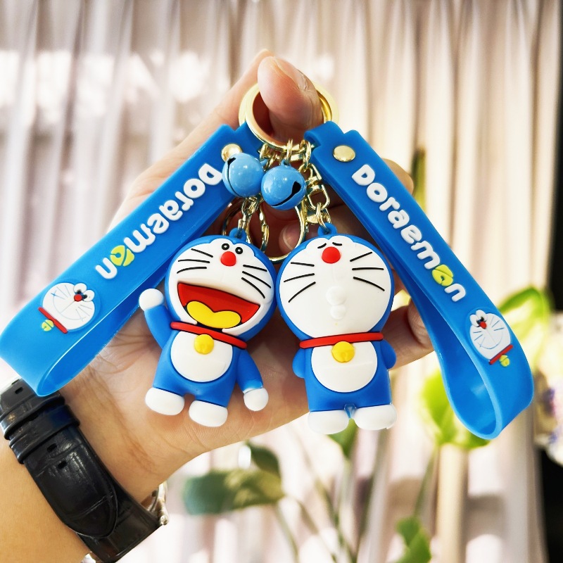 크로스 보더 만화 도라에몽 열쇠 고리 귀여운 징글 고양이 PVC 장난감 가방 펜던트 자동차 열쇠 고리 선물스토어 가기