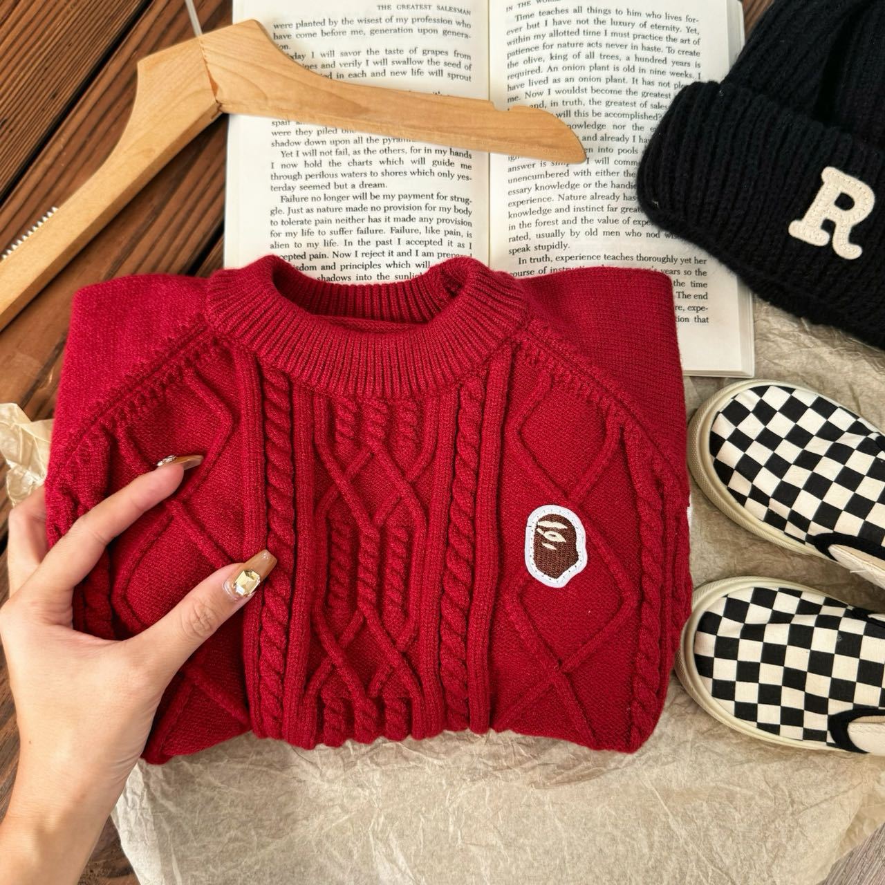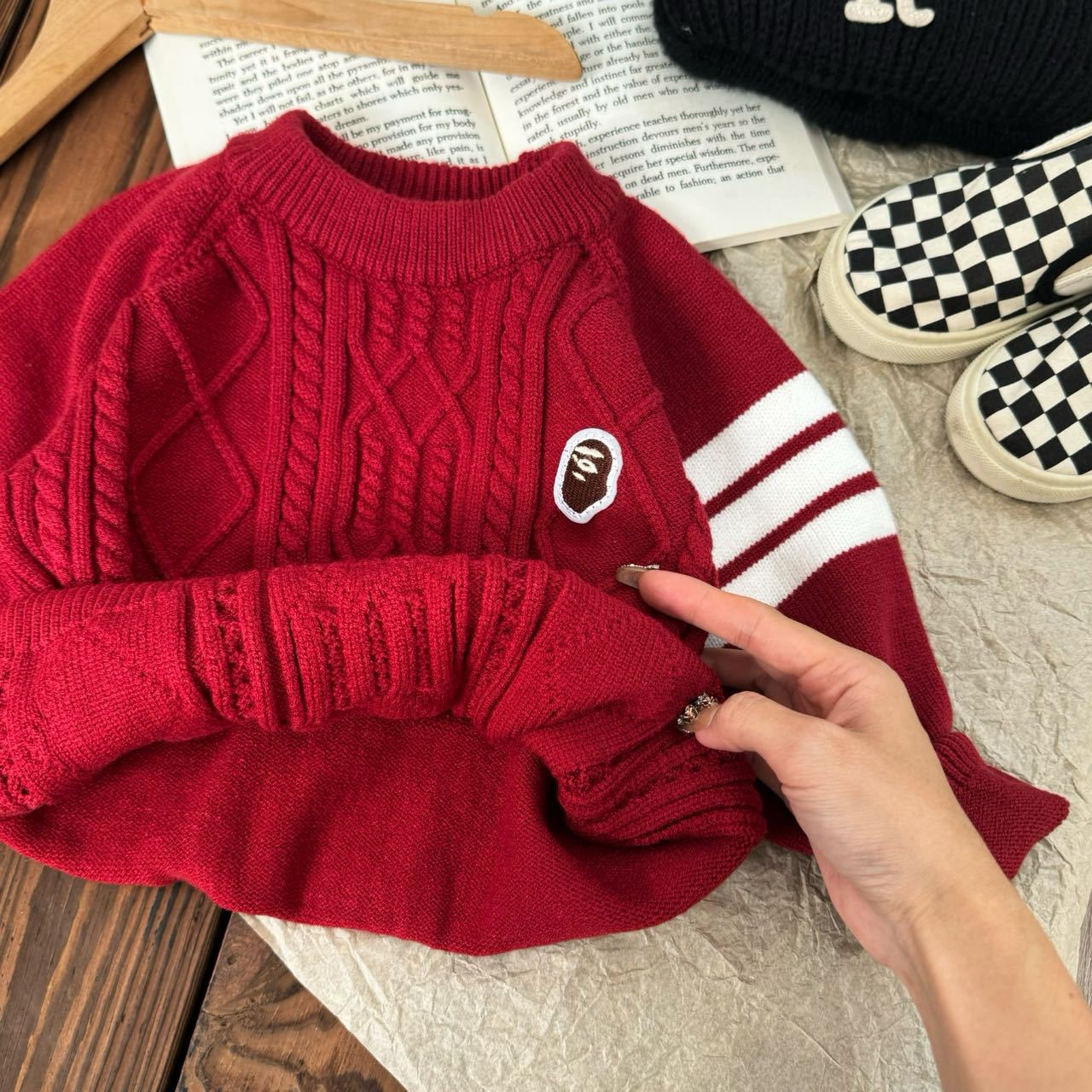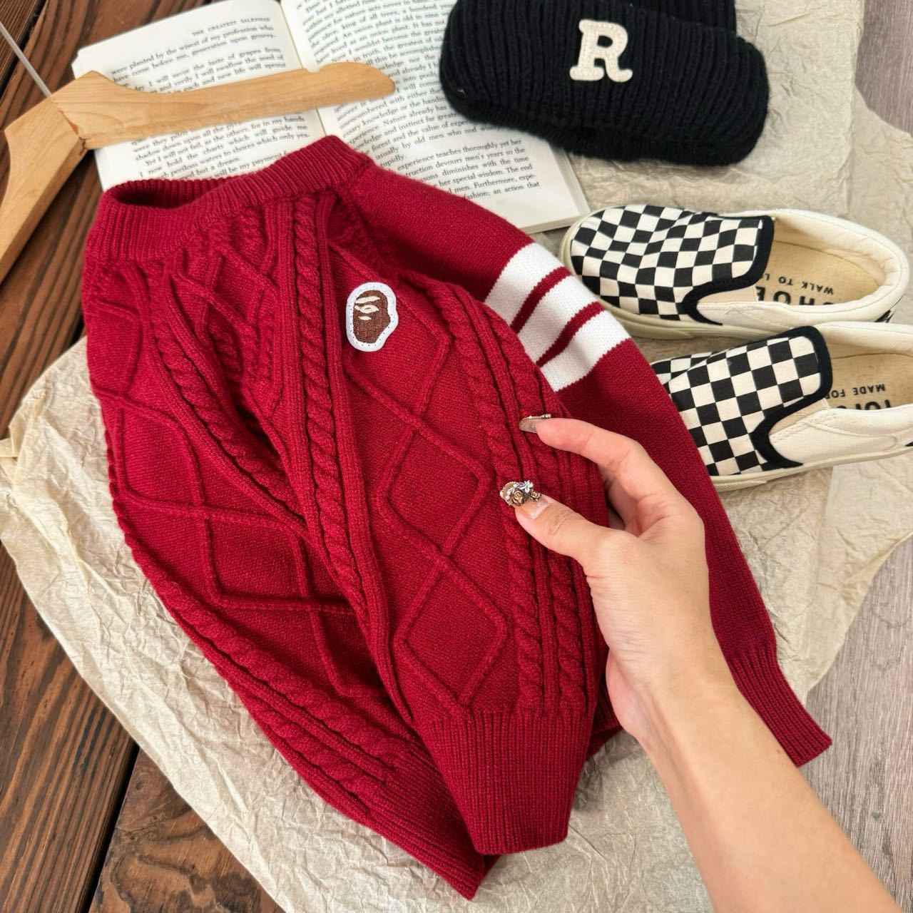 어린이 스웨터 가을 겨울 신년 의류 남아 스웨터 아기 풀오버 두꺼운 뜨개질 빨간색 트렌디 어린이용스토어 가기