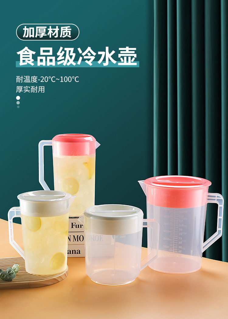 플라스틱 냉수 주전자 냉수 주전자 대용량 차 끓는 물 주전자 고온 저항 가정용 식품 학년 우유 찻집 주전자