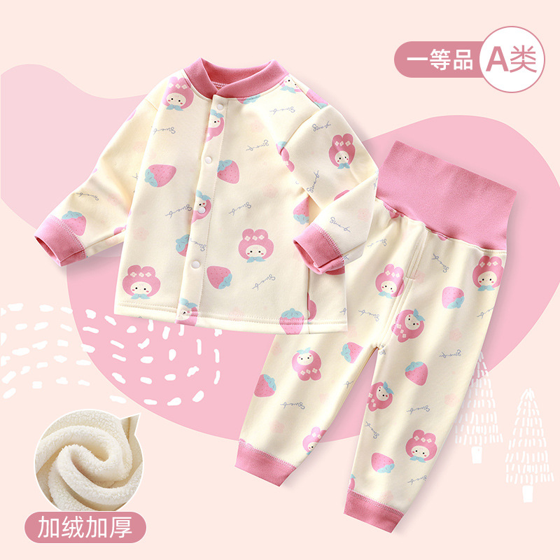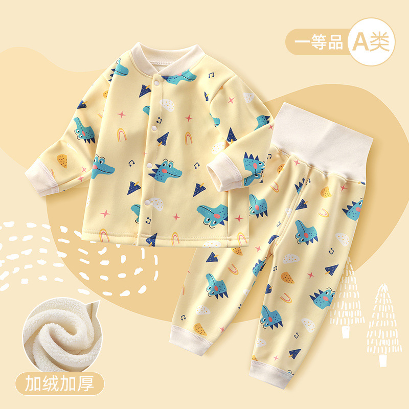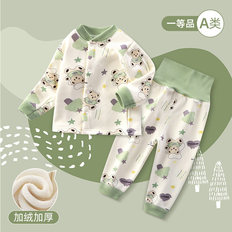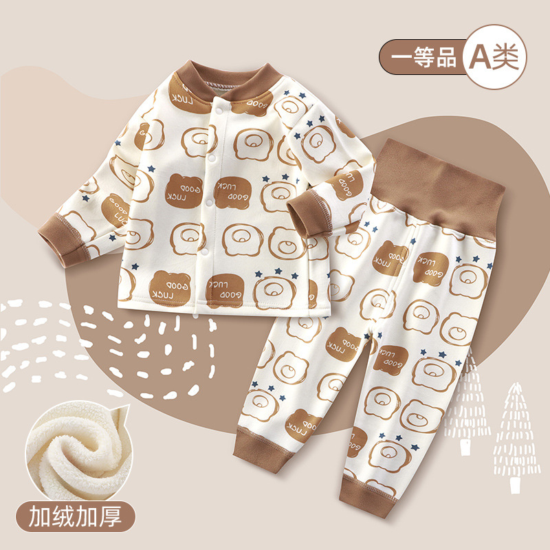 아기 소년과 소녀 따뜻한 만화 하이 웨이스트 속옷 가정 옷 투피스 세트 세트 어린이 겨울 기모 두꺼운 카디건스토어 가기