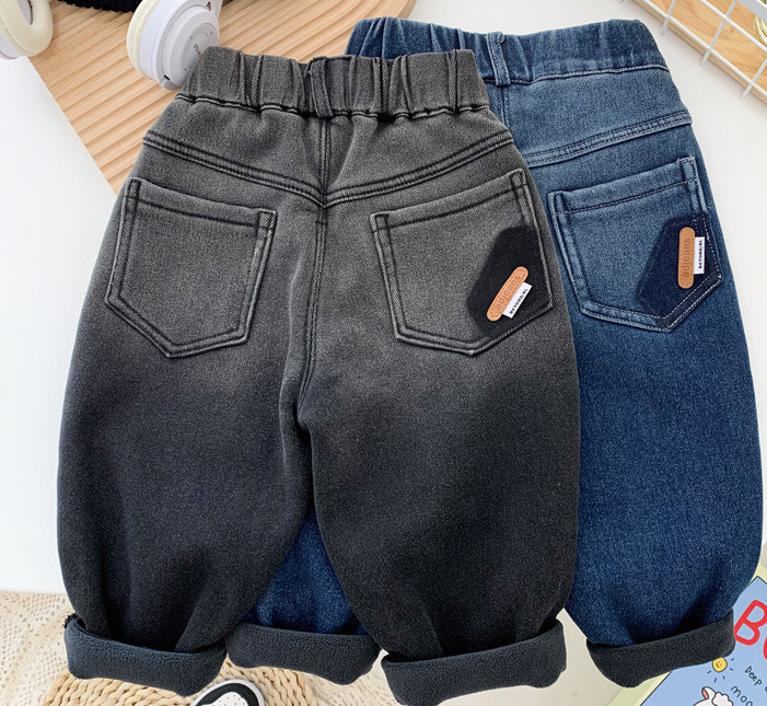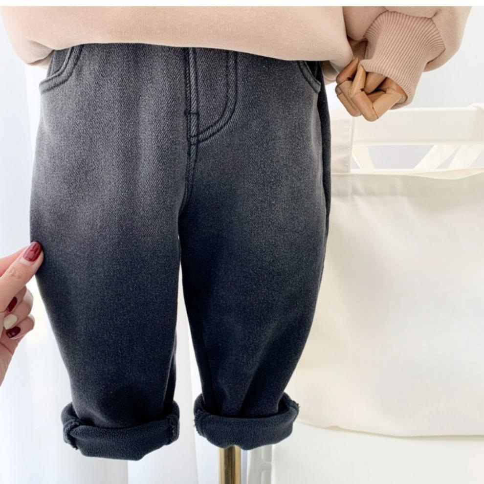 어린이 기모 바지 2023 새로운 소년 기모 청바지 가을과 겨울 아기 한국어 느슨한 캐주얼 바지