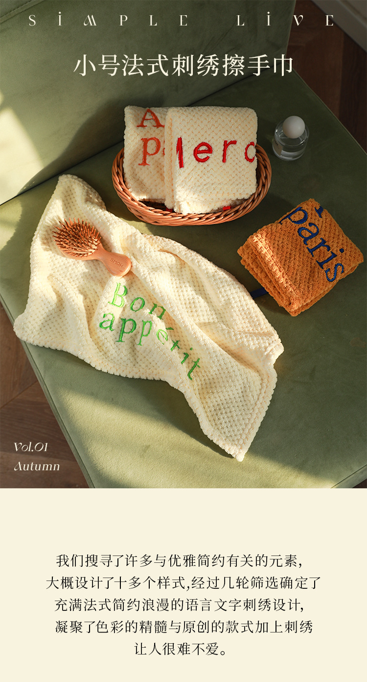 작은 사각 타올 홈 텍스타일 홈 장식 단색 흡수성 사각 프랑스 편지 자수 주방 부드러운 핸드 타올스토어 가기