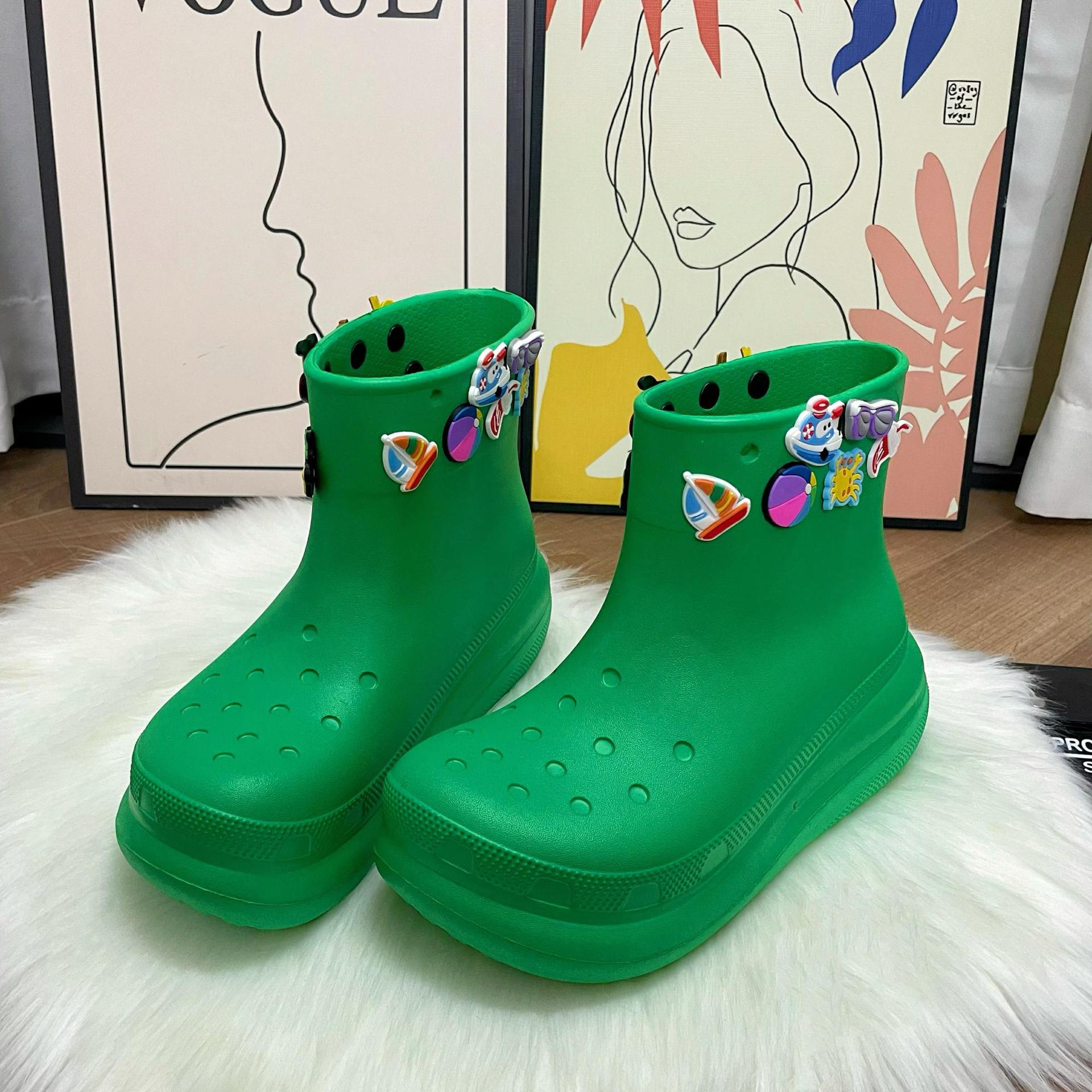 2023 패션 간단한 가을 새로운 EVA 만화 겉옷 여성의 높은 바지 두꺼운 바닥 방수 미끄럼 방지 장화