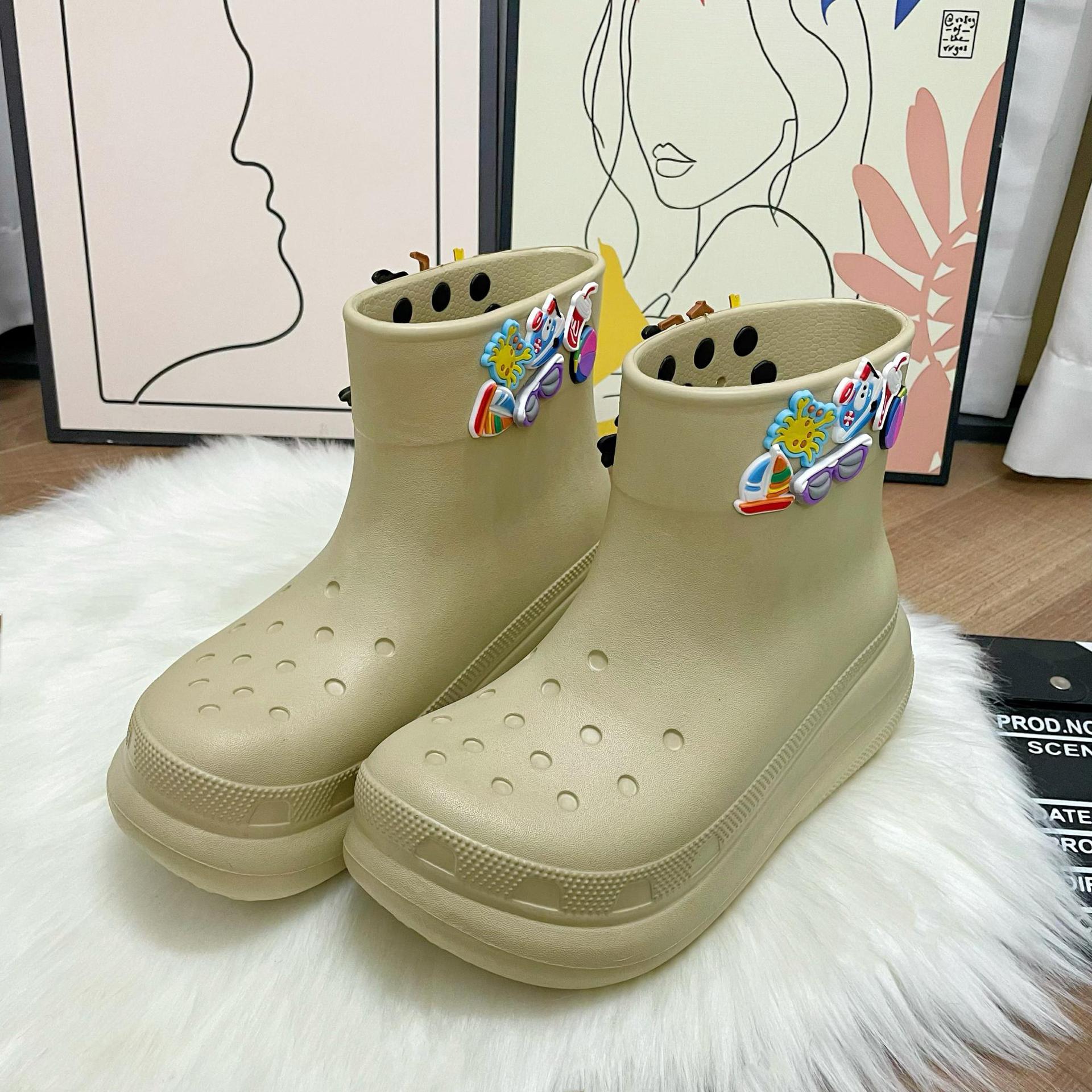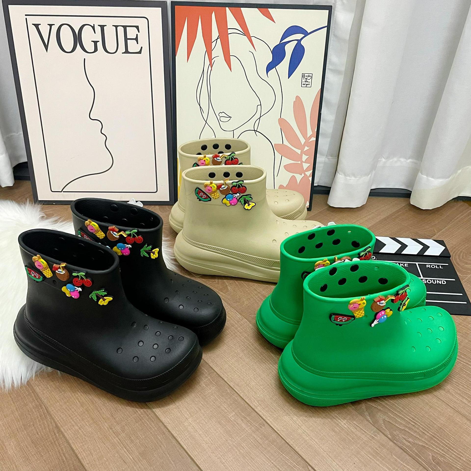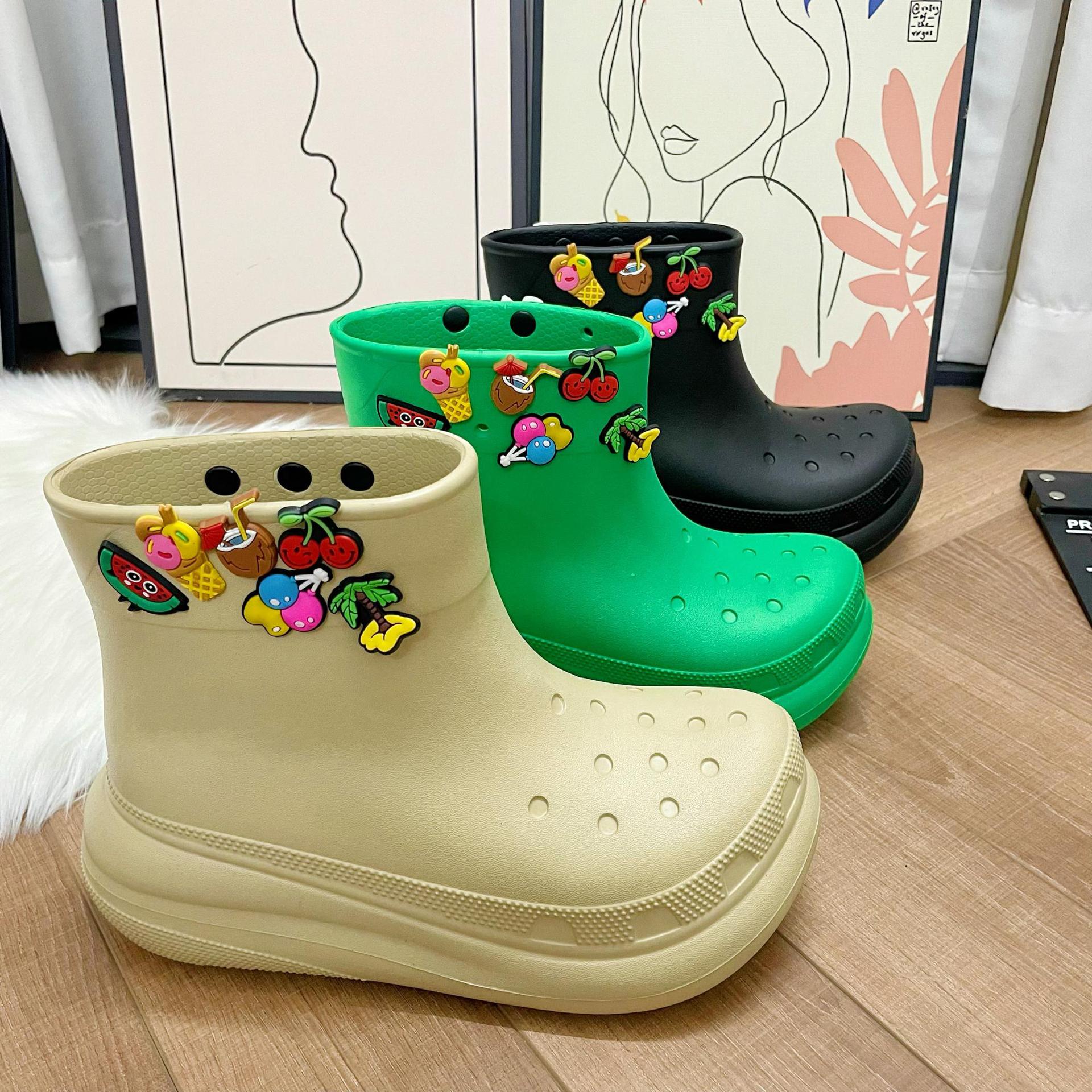 2023 패션 간단한 가을 새로운 EVA 만화 겉옷 여성의 높은 바지 두꺼운 바닥 방수 미끄럼 방지 장화스토어 가기