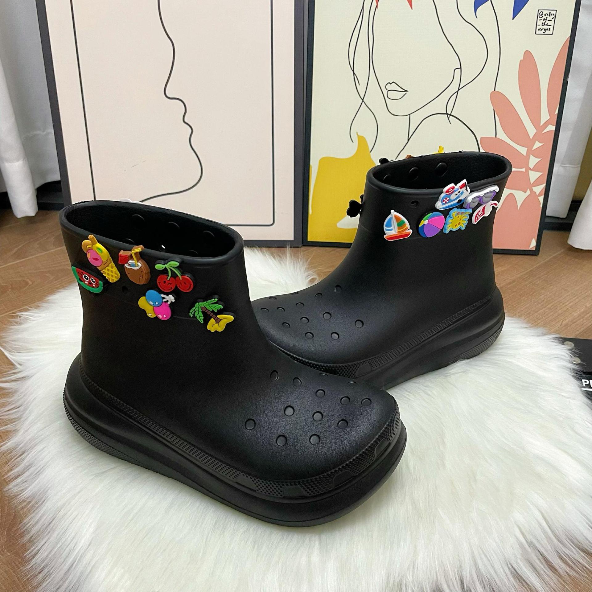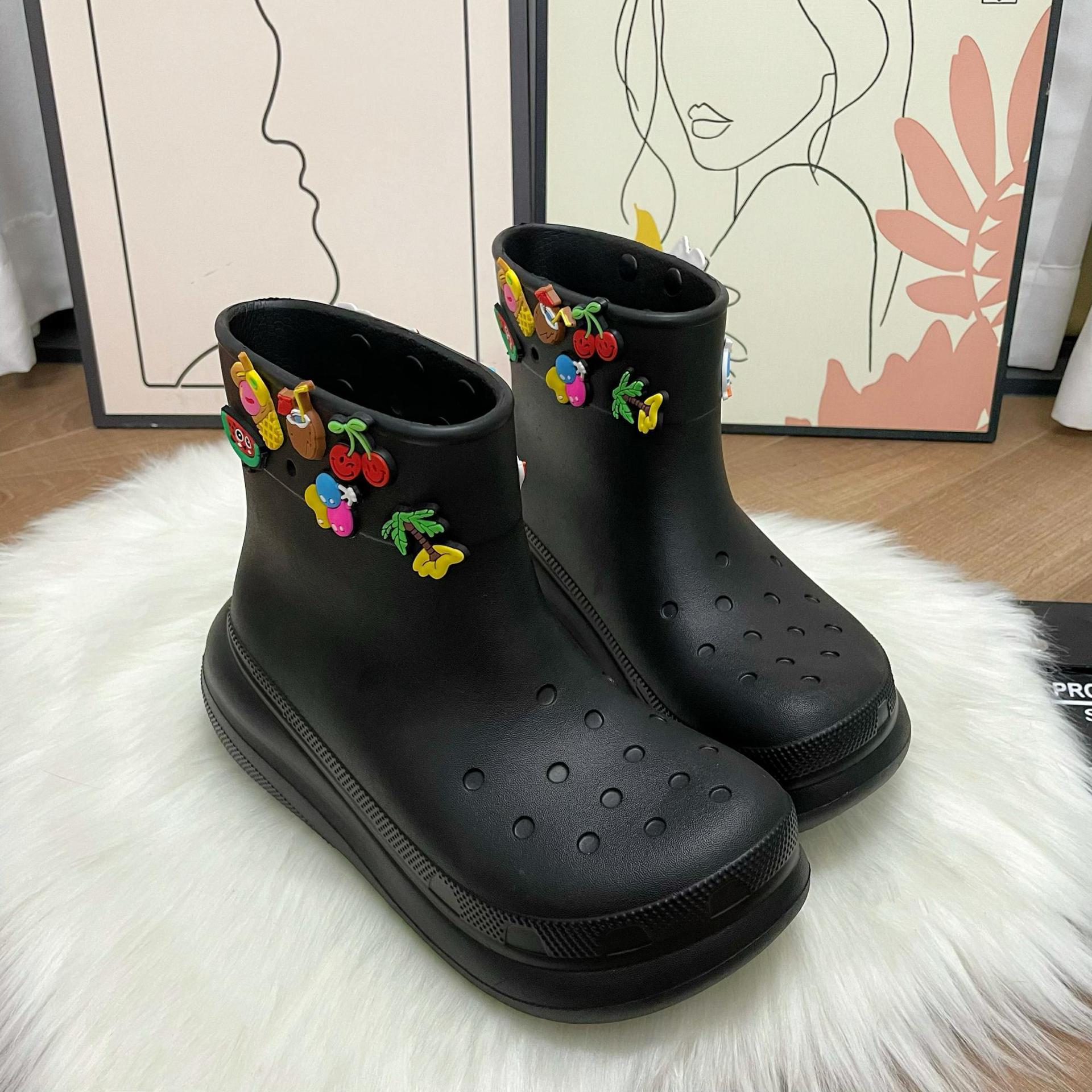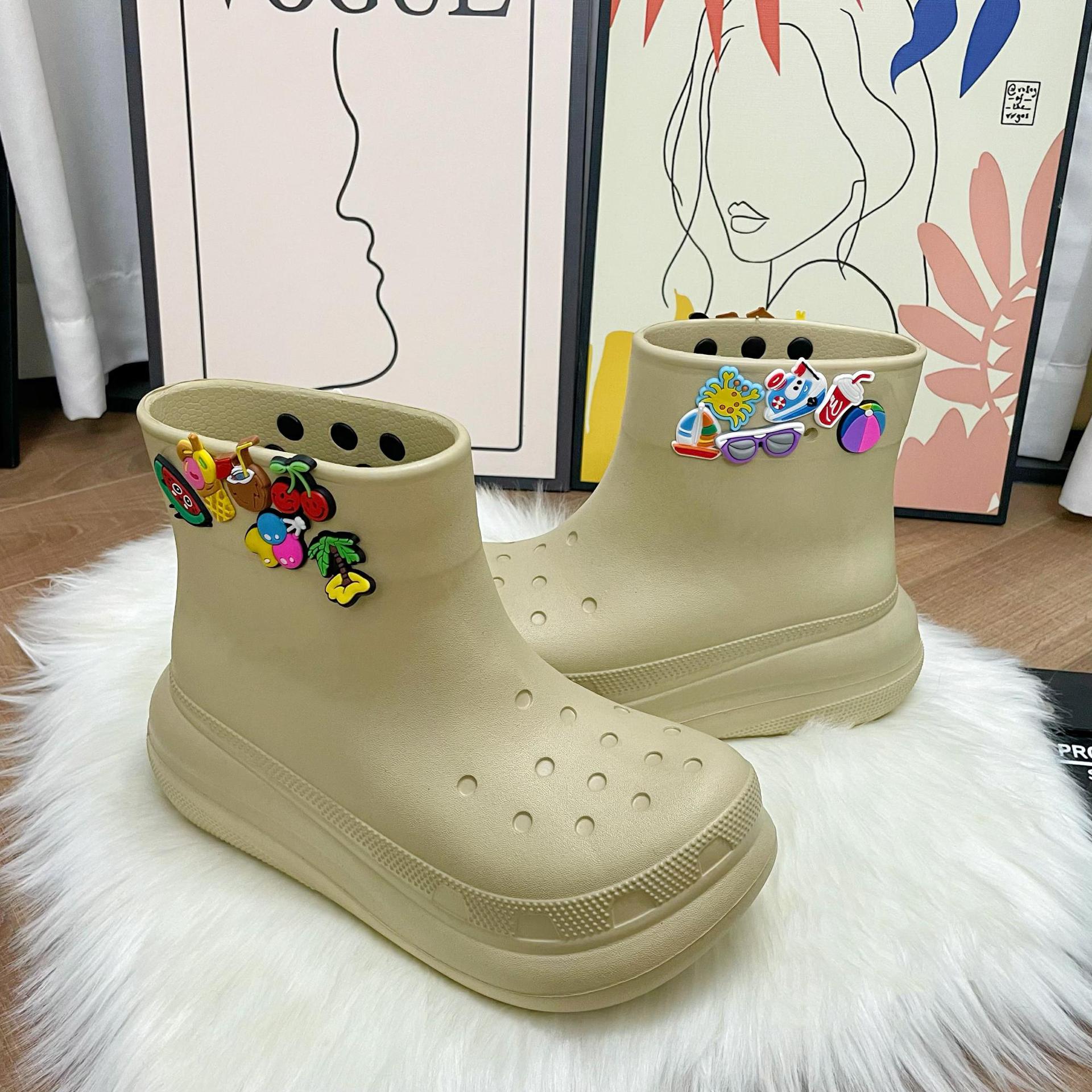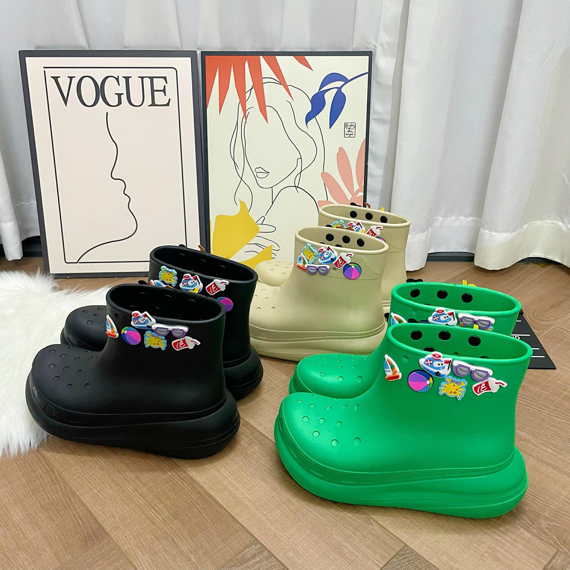 2023 패션 간단한 가을 새로운 EVA 만화 겉옷 여성의 높은 바지 두꺼운 바닥 방수 미끄럼 방지 장화스토어 가기