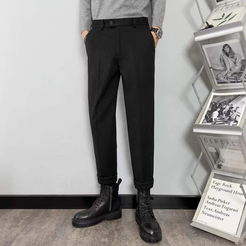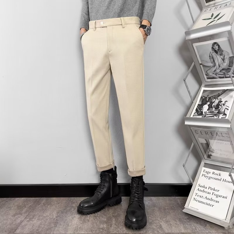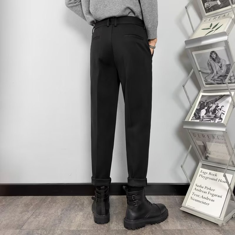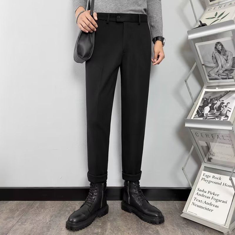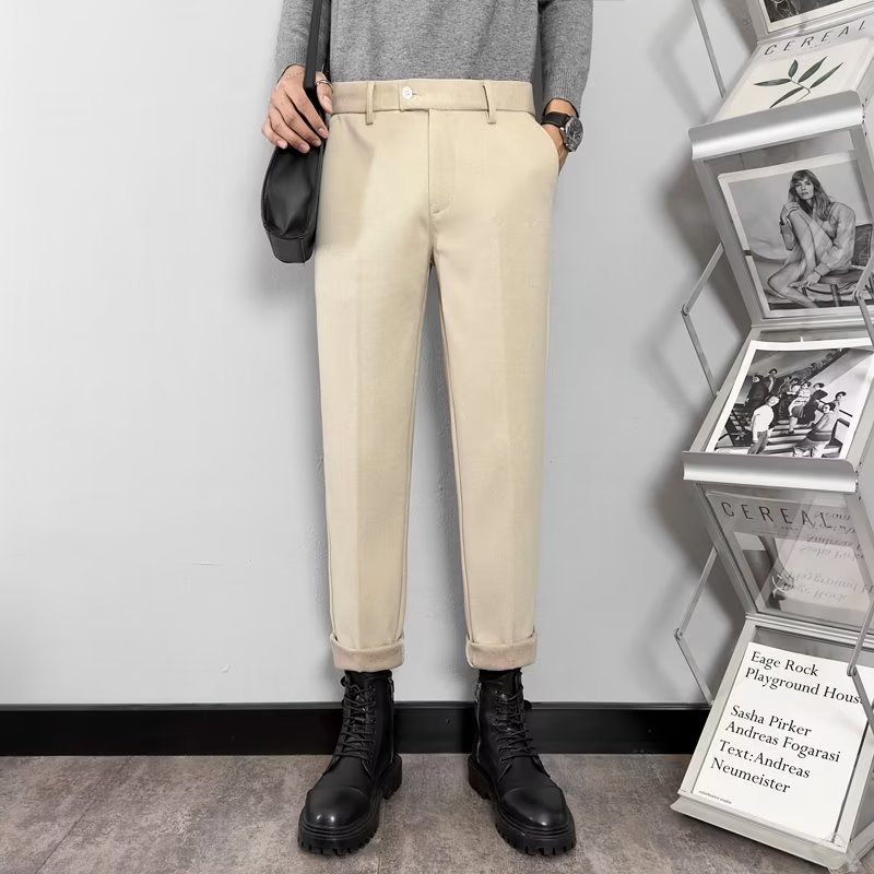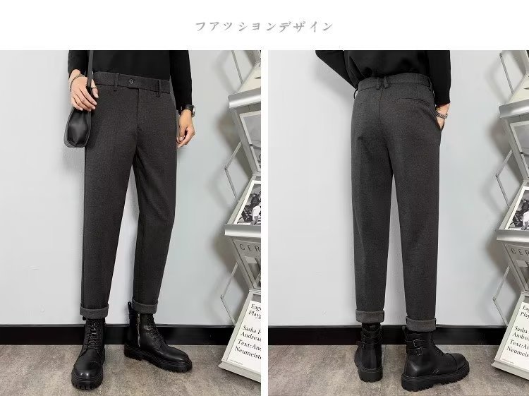 남성용 2023 가을과 겨울 가벼운 익은 바람 모직물 소재 고감도 무다림질 슬림 한국 스트레이트 튜브 캐주얼 바지 헤어 세대스토어 가기