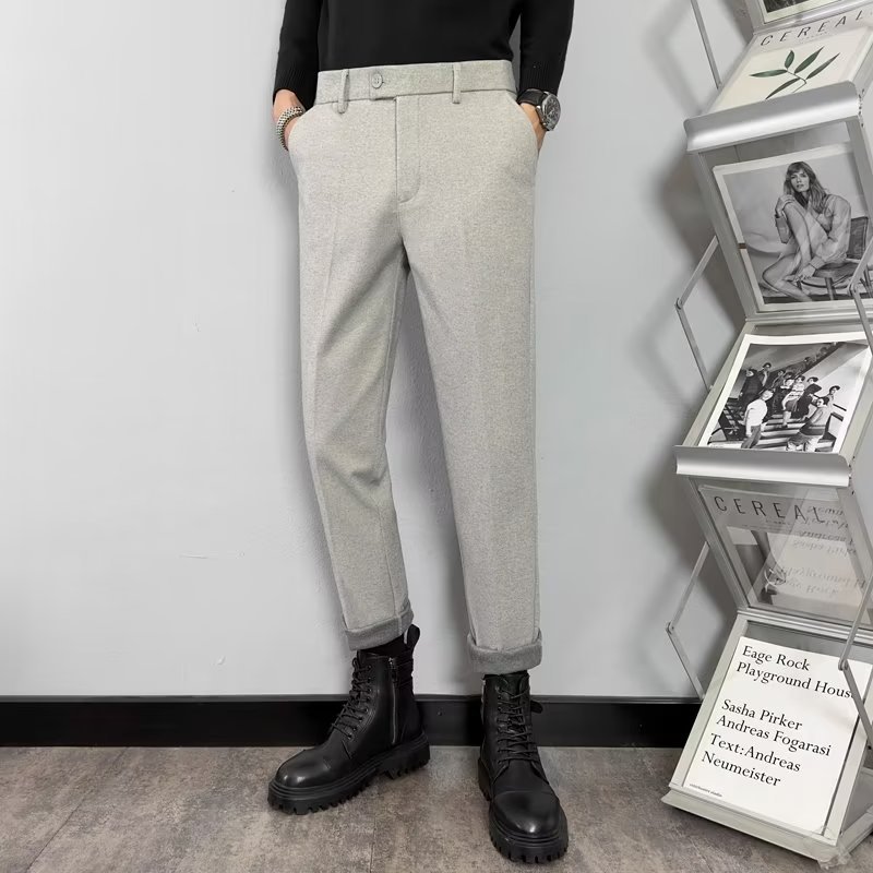 남성용 2023 가을과 겨울 가벼운 익은 바람 모직물 소재 고감도 무다림질 슬림 한국 스트레이트 튜브 캐주얼 바지 헤어 세대