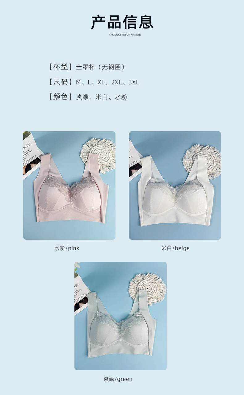Our wireless seamless adjustable bra features smart design (one - piece seamless cutting, integrated cup with cartilage support) and practical functions (breathable inner cups, breast massage waistband, zero - constraint comfort). We support small - batch wholesale and customization (colors, sizes) to serve cross - border e - commerce, physical stores, and domestic platforms. Available in water pink, light green, rice white and sizes M、L、XL、2XL、3XL, it fits daily commute, home leisure and light sports occasions. Our stable supply chain ensures fast delivery.