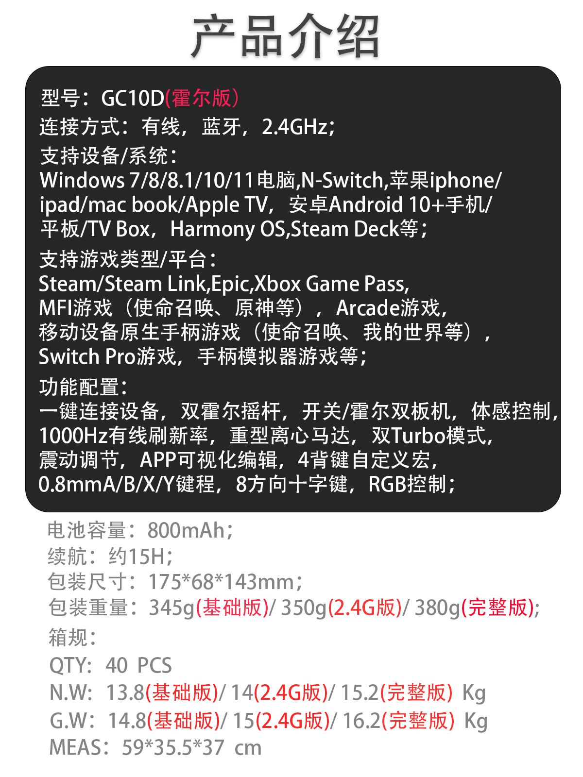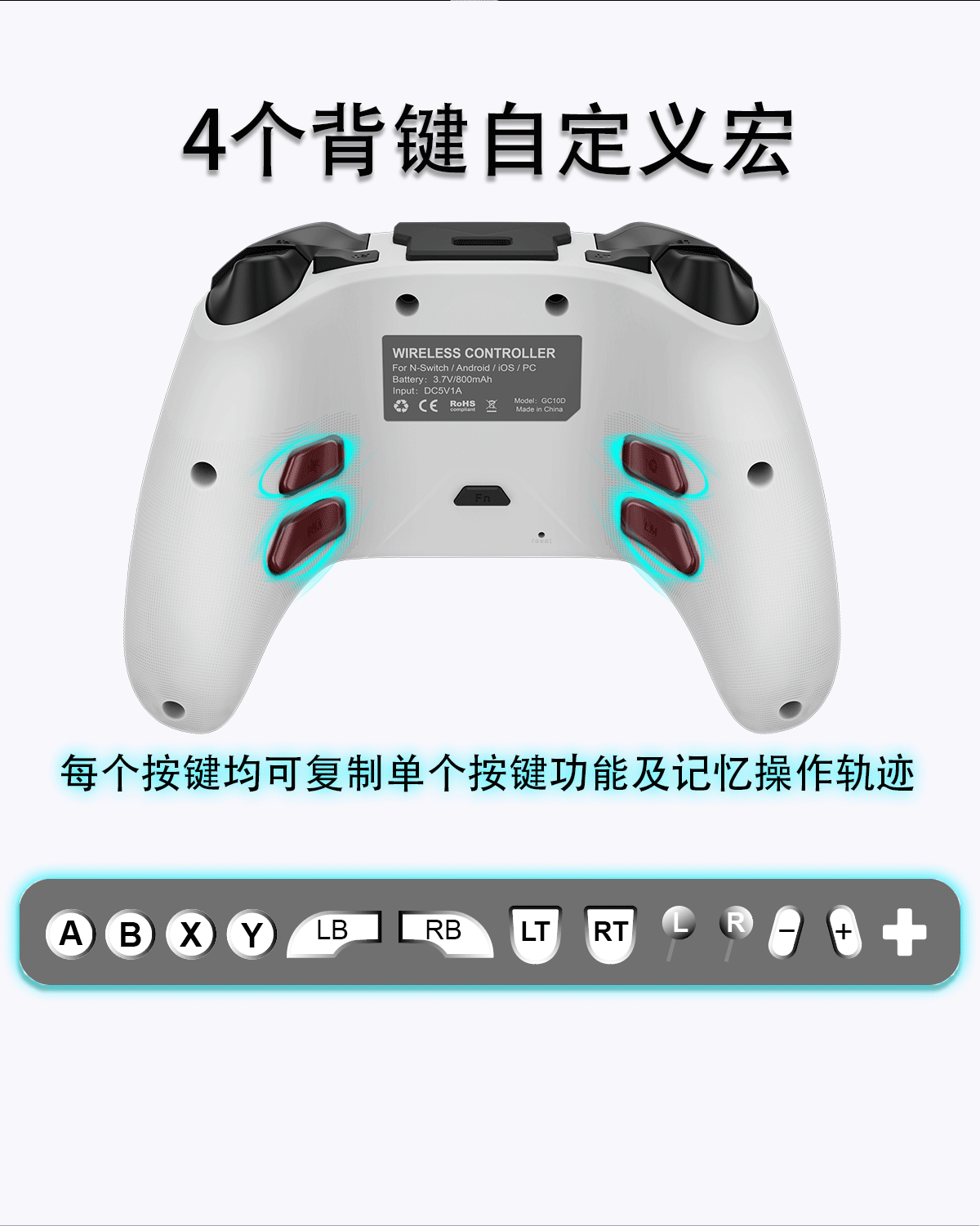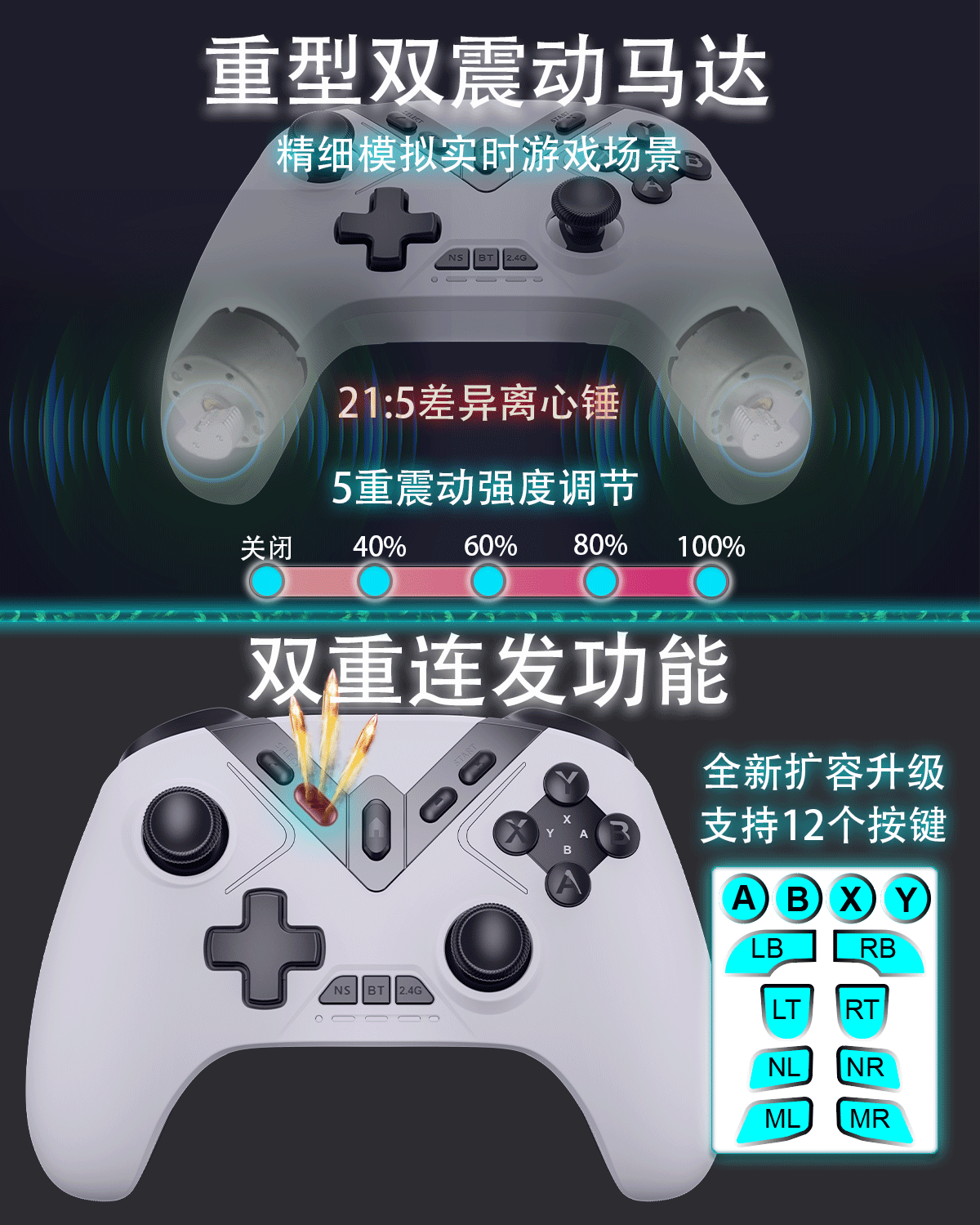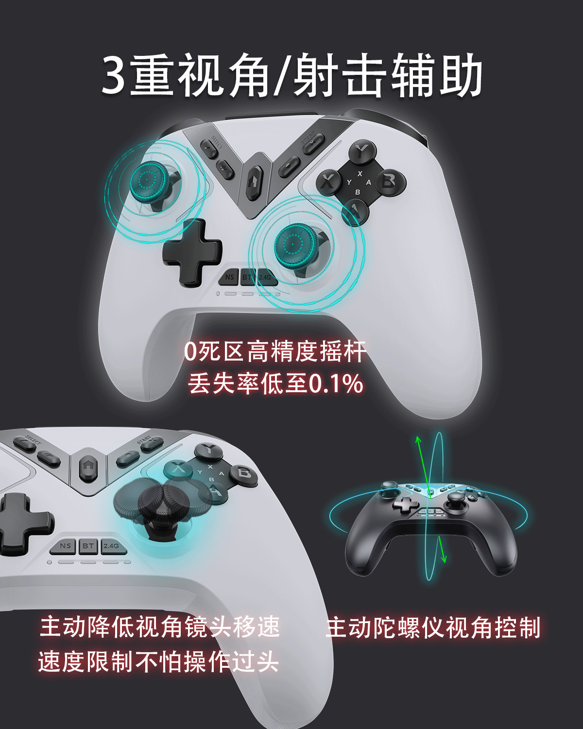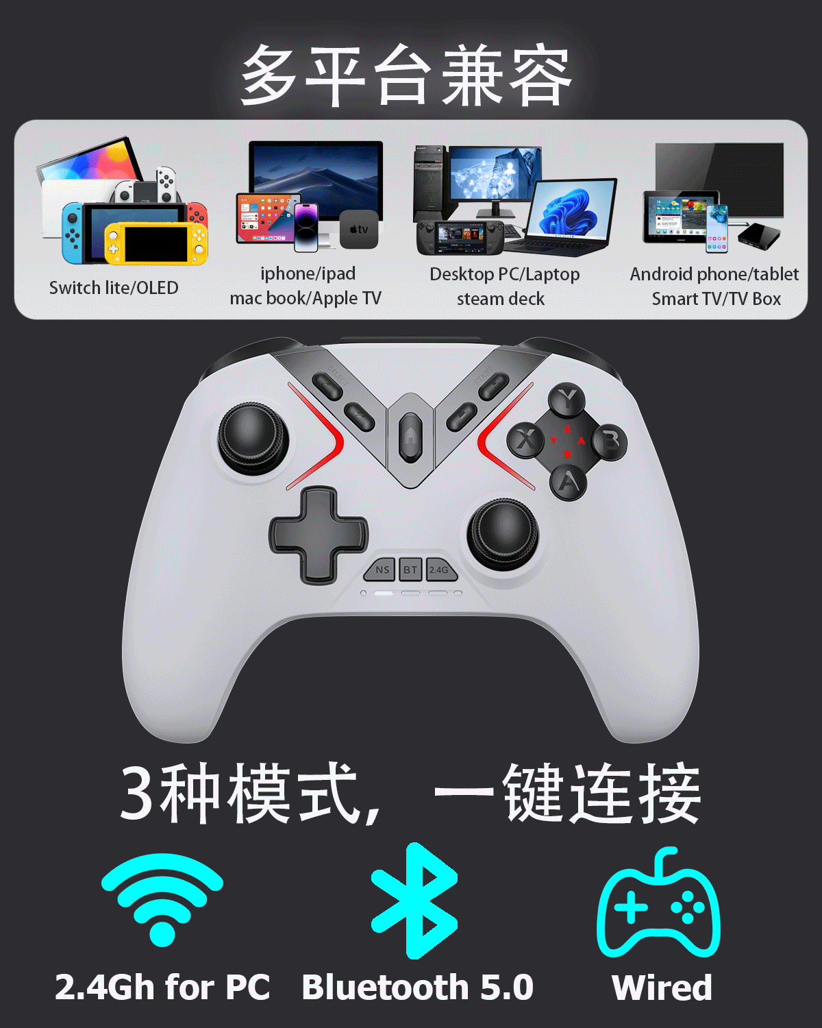 2.4G 무선 컴퓨터 PC 휴대폰 스위치 블루투스 게임 컨트롤러 스팀 홀 센서 백키 컨트롤러
