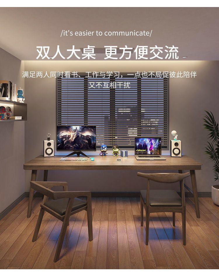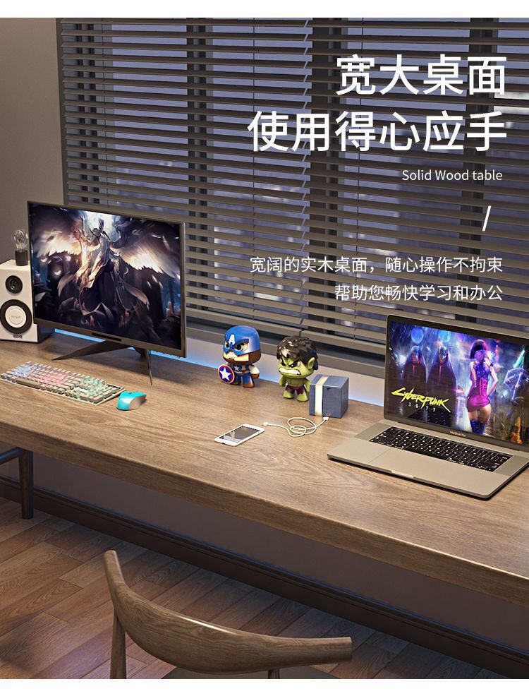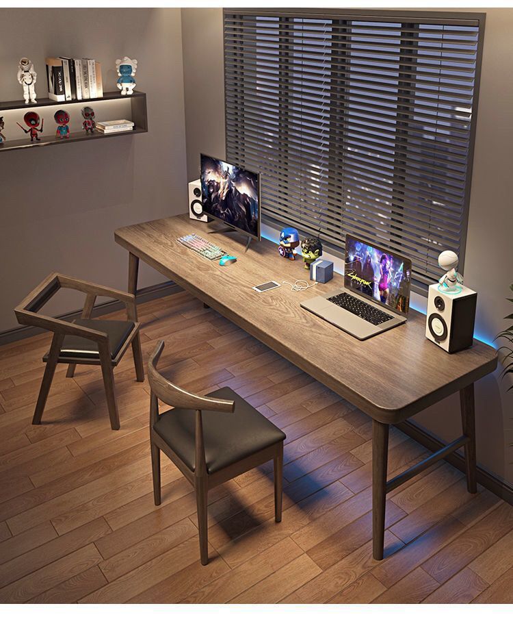 Ash 가정용 책상 순수한 단단한 나무 빈티지 컴퓨터 책상 간단한 더블 스터디 데스크 사무실 책상 로그 좁은 테이블