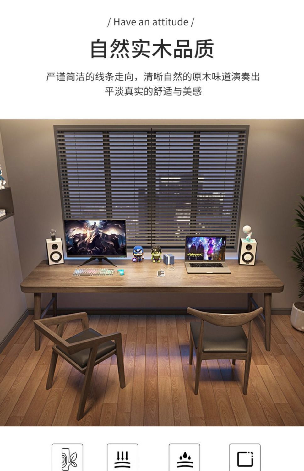 Ash 가정용 책상 순수한 단단한 나무 빈티지 컴퓨터 책상 간단한 더블 스터디 데스크 사무실 책상 로그 좁은 테이블스토어 가기