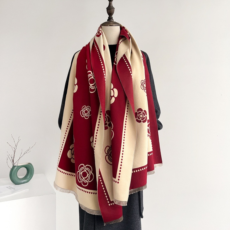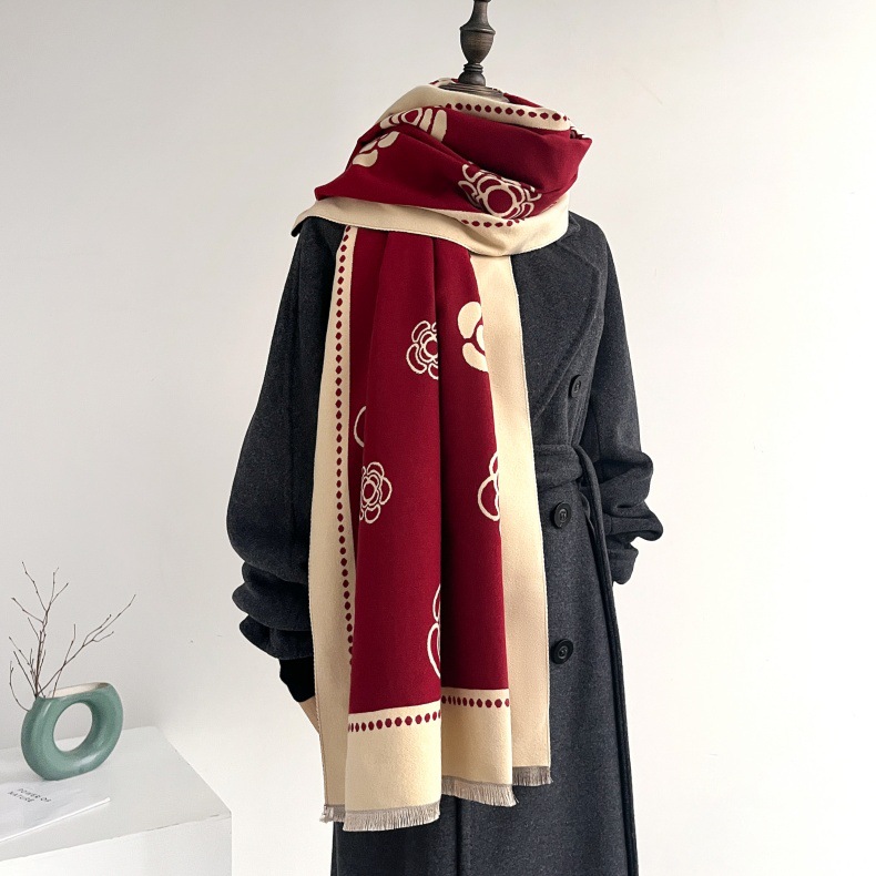 폭발성 동백 캐시미어 스카프 여자 겨울 하이 엔드 올 매치 두꺼운 따뜻한 목 에어컨 샤일스토어 가기