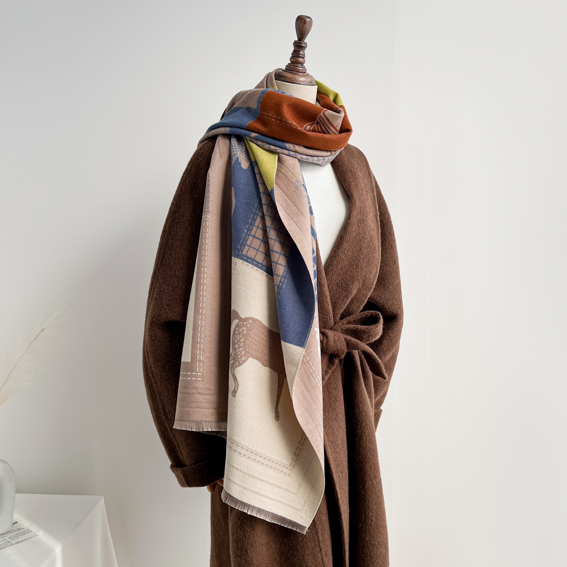 秋冬新款双面彩色油画系列仿羊绒加厚保暖围巾女空调披肩外搭批发