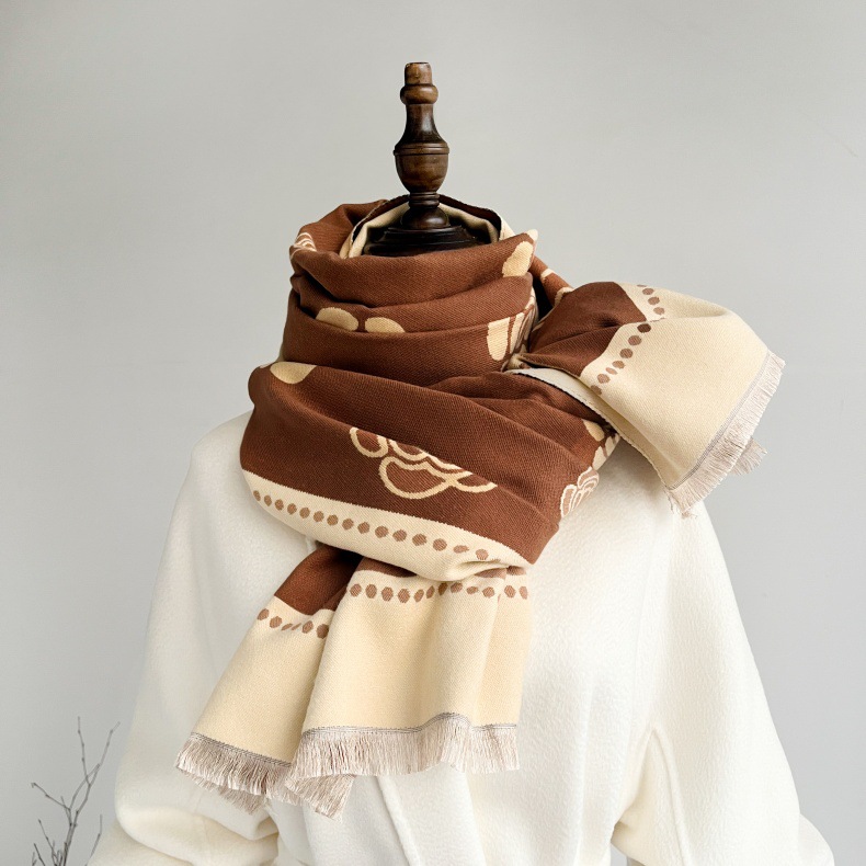 复古提花围巾女生妈妈送礼秋冬款仿羊绒保暖加厚百搭围脖披肩两用