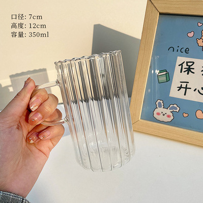 스타일의 유리 손잡이가있는 창조적 인 꽃잎 측면 높은 색상 값 간단한 곡물 커피 우유 컵 유리 물 컵스토어 가기
