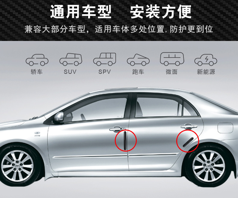 자동차 도어 충돌 방지 스트립 탄소 섬유 질감 고경도 PC 엔지니어링 플라스틱 자동차 도어 충돌 방지 스티커 긁힘 방지 보호 스티커스토어 가기