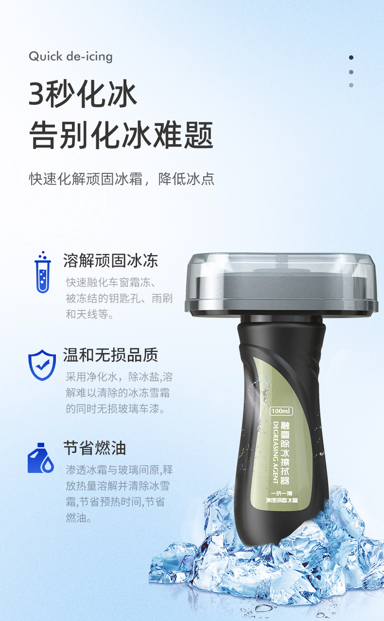 눈 녹이기 방지제, 자동차 유리용 동결 방지제, 제상제, 제설제, 차량 앞 유리용 얼음 방지 및 제설 도구