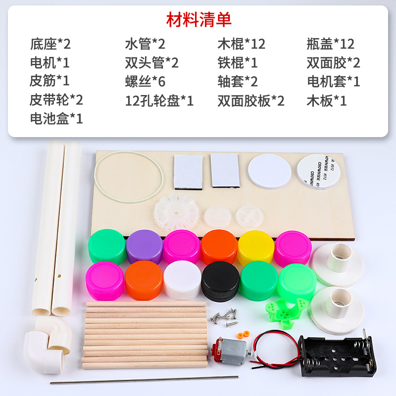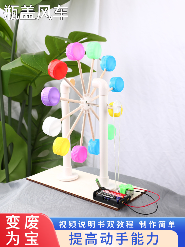 과학기술 소형 제작 과학 실험 세트 어린이 교육용 장난감 수공예 DIY 재료 폐기물을 보물로 바꾸는 풍차