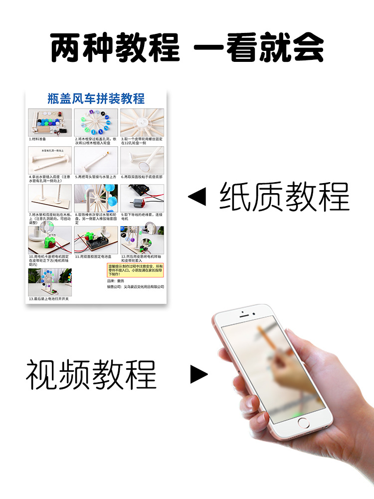 과학기술 소형 제작 과학 실험 세트 어린이 교육용 장난감 수공예 DIY 재료 폐기물을 보물로 바꾸는 풍차스토어 가기